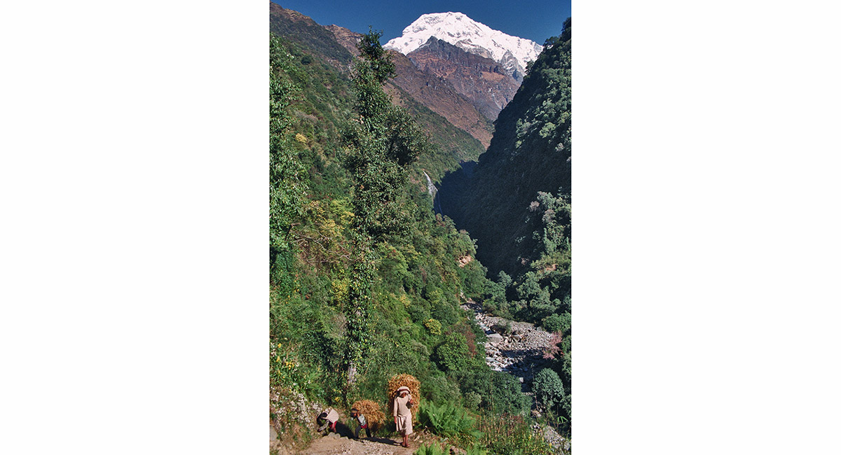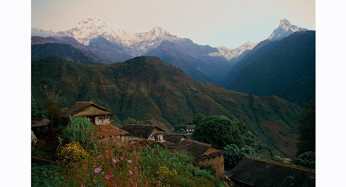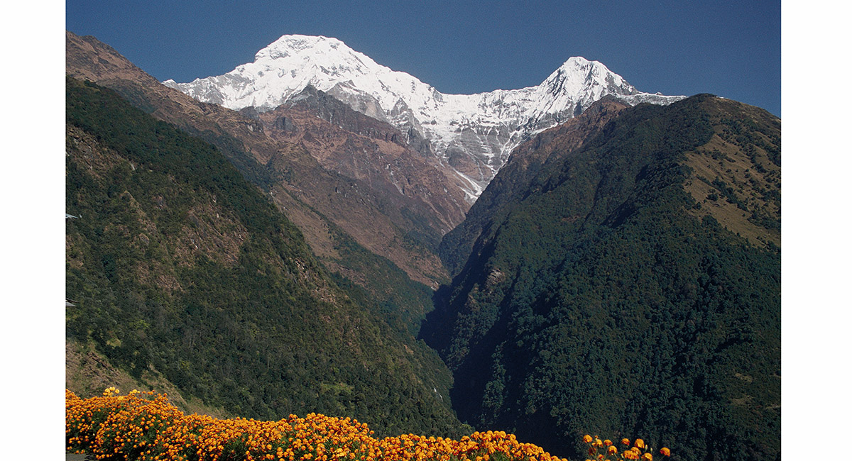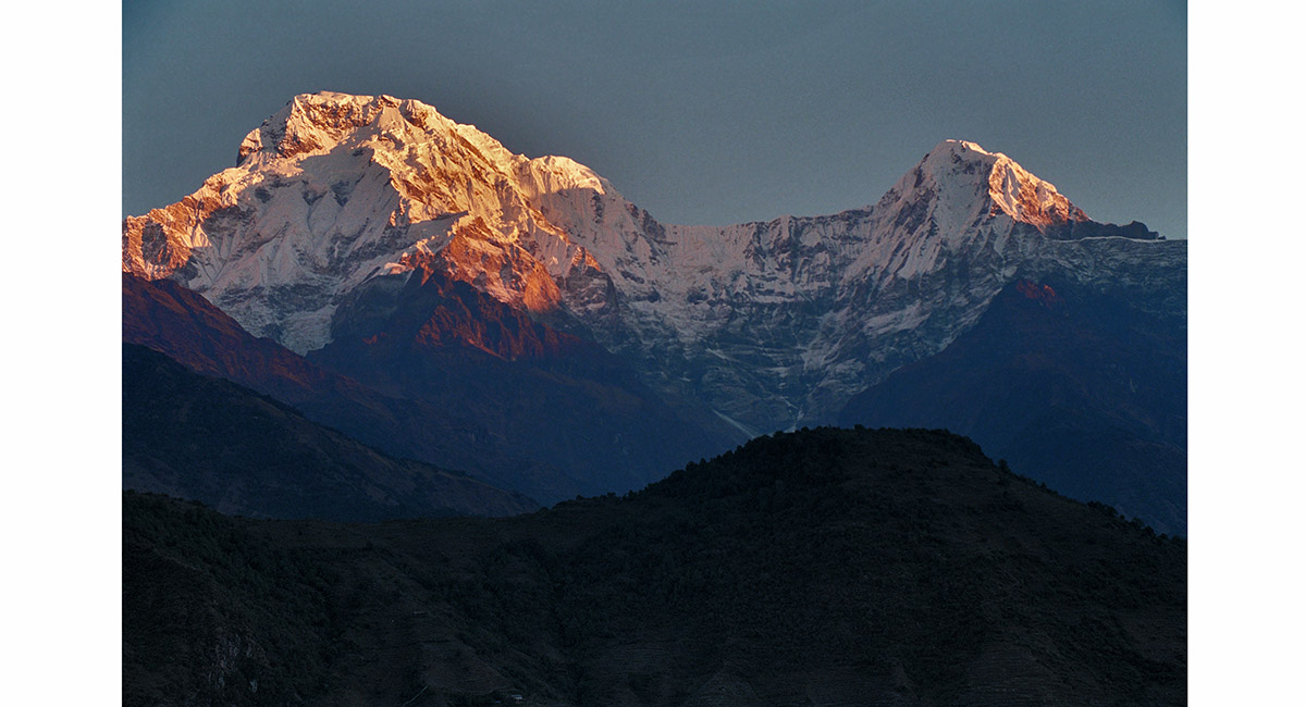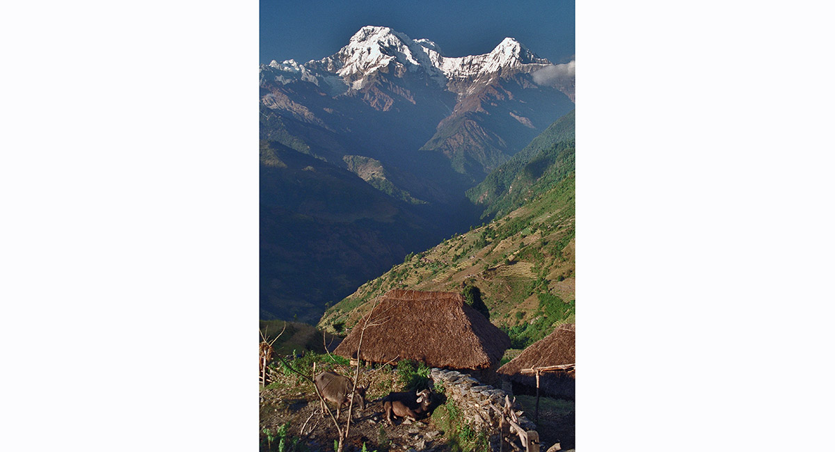 Annapurna South (about 7,500m) and Hiunchuli (6,441m) from near Landrung (1,550m)