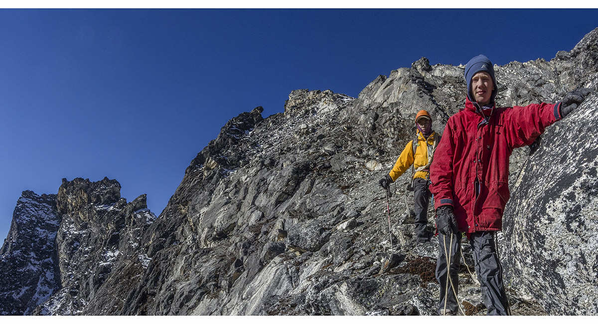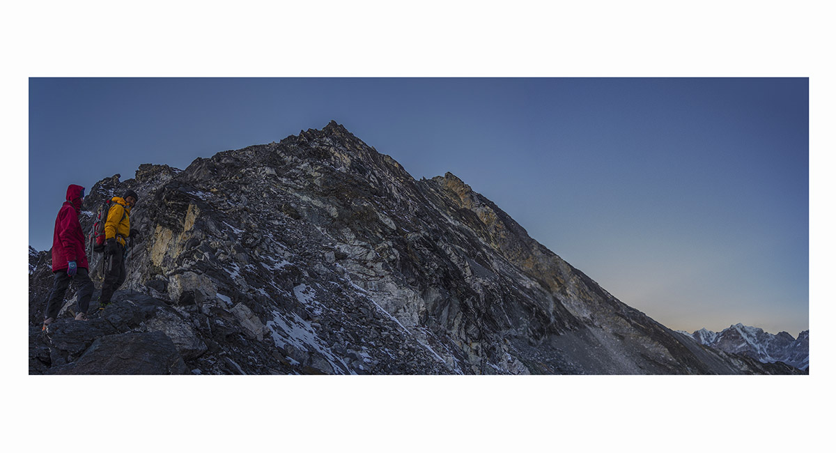 Dawn view of Makalu (left) and Ama Dablam (right), as we commenced our climb of Pokhalde