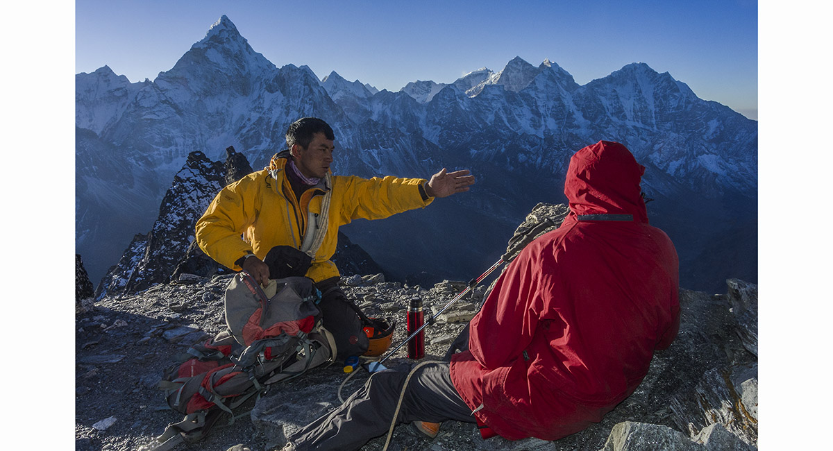 Taking a breather at about 5,700m. Ama Dablam is behind at left