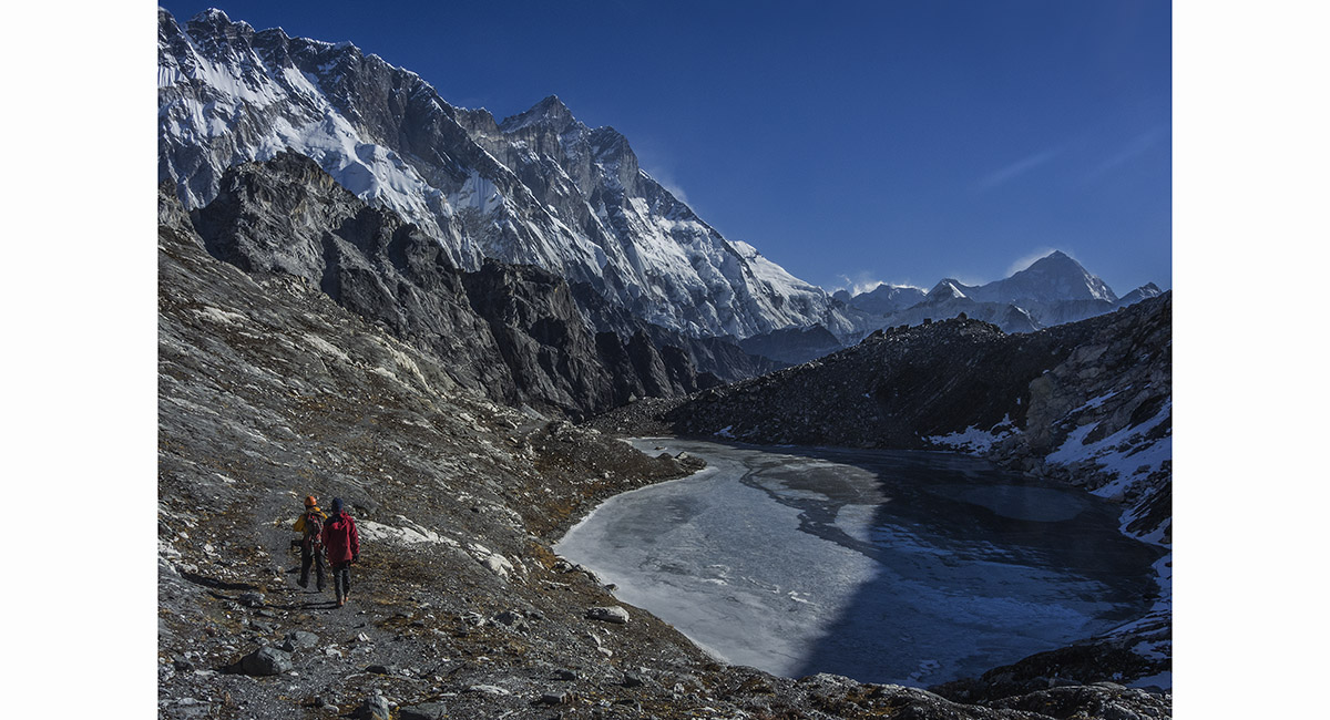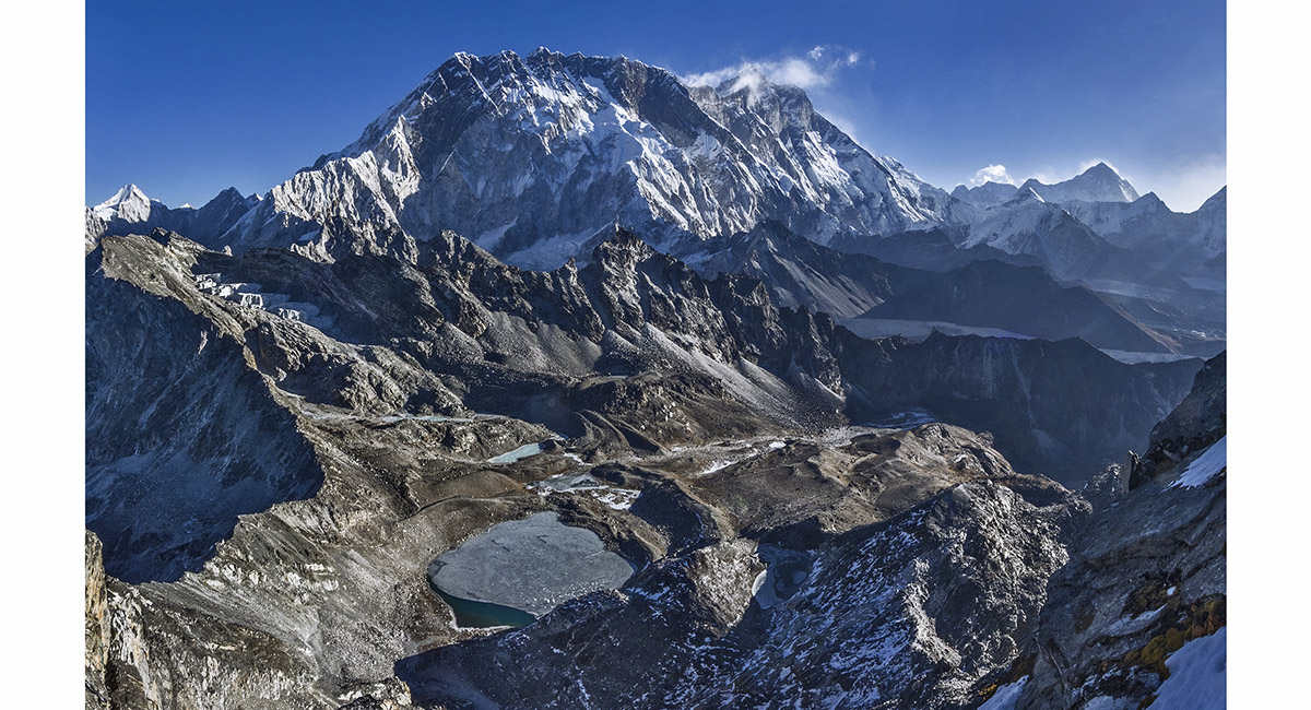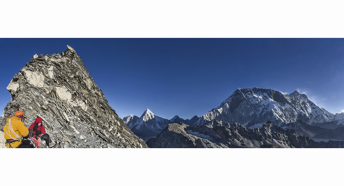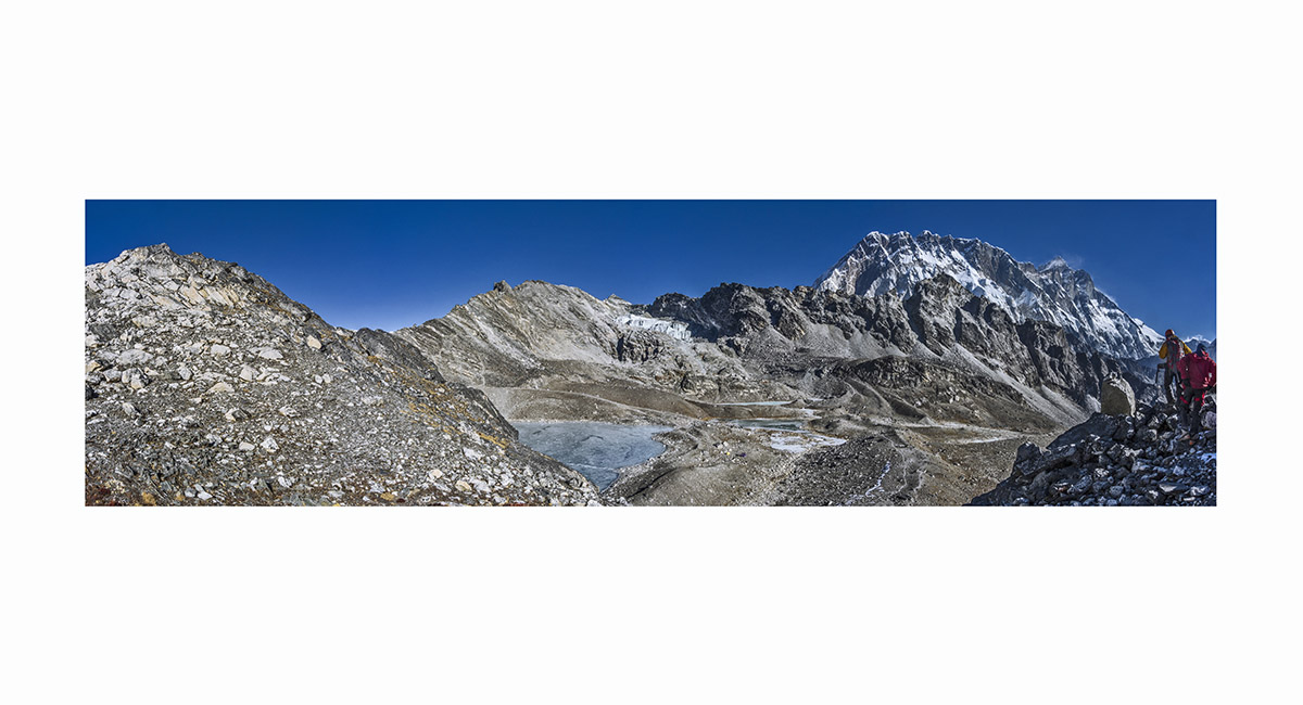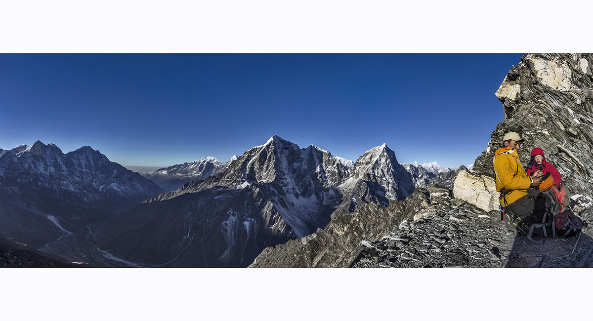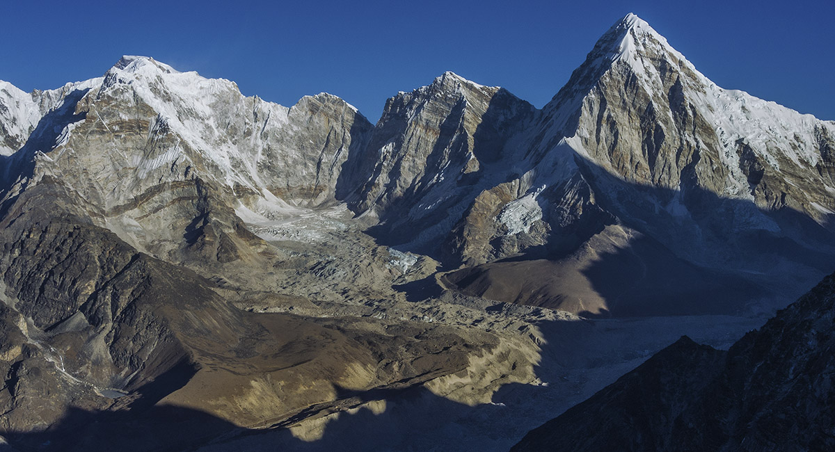 Pokhalde summit view to Lobuje East (left) and Pumori (right)