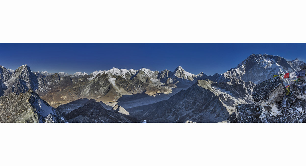 Pokhalde summit view north and west - spanning Cholatse (left) to Lhotse (right)