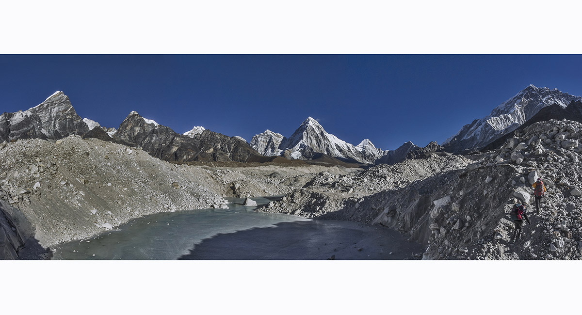 Kami Chiri Sherpa, our guide for the next 4 days, shows us a way across the Khumbu Glacier from Lobuje