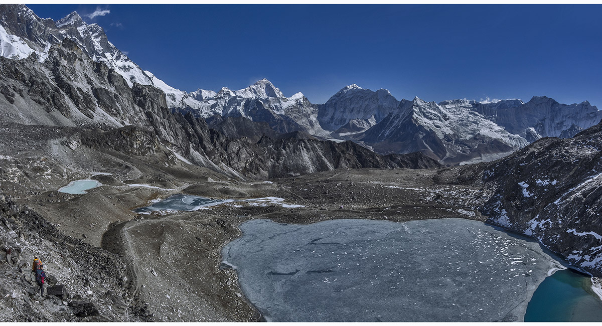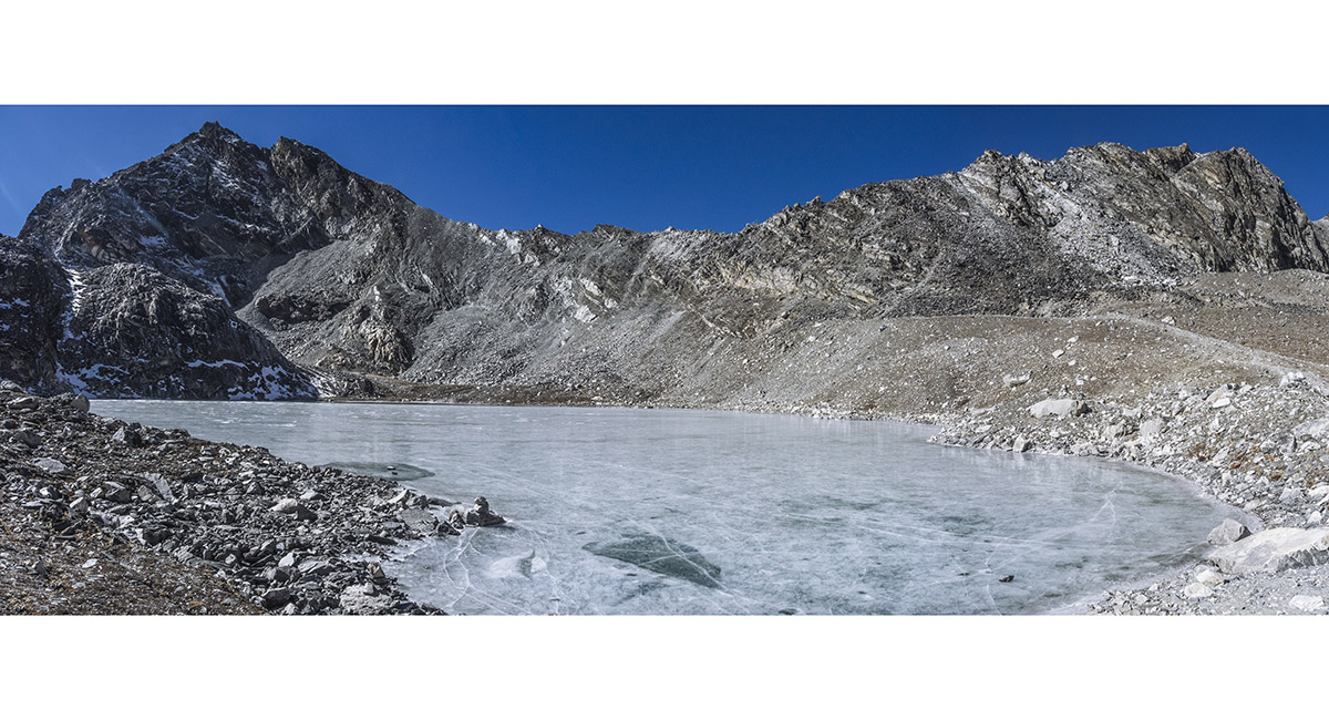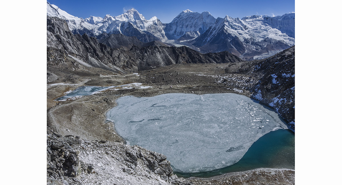 The lake on the eastern side of Kongma La. Behind, from left, Pokhalde (5,806m), Kongma La (5,535m) and Kongma Tse (5,813m)