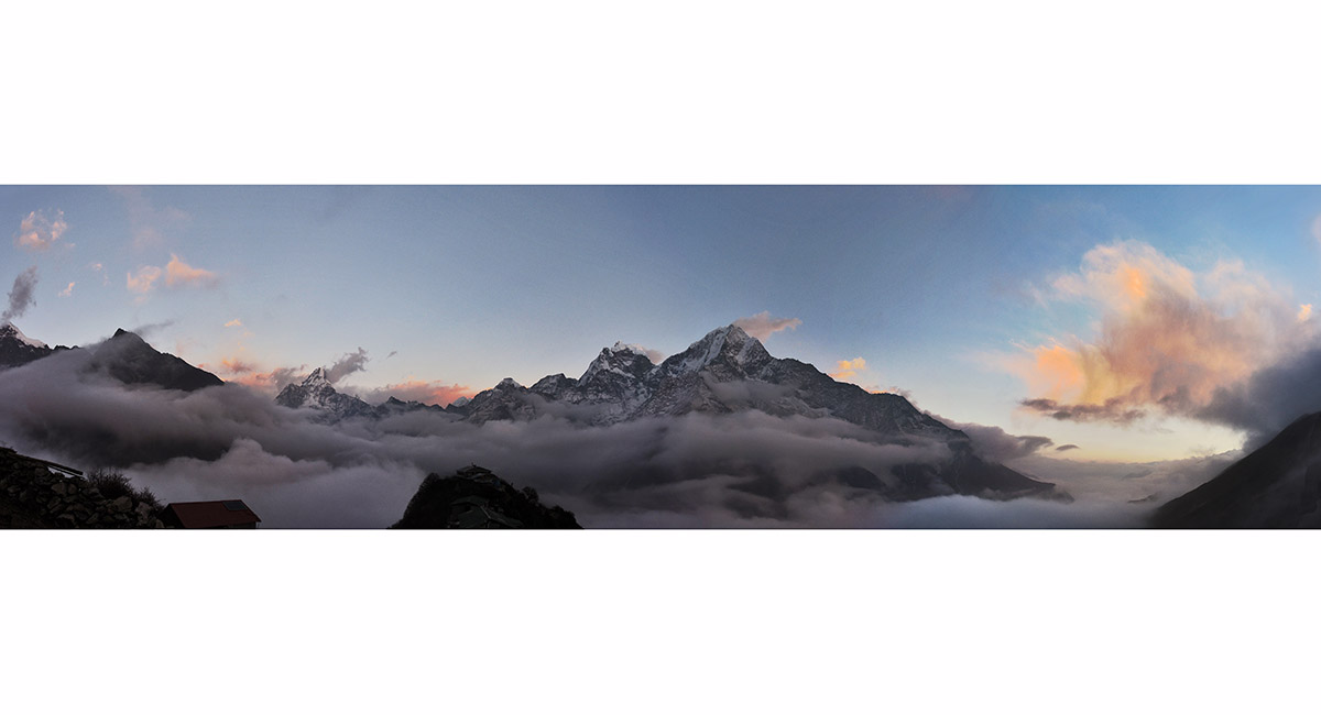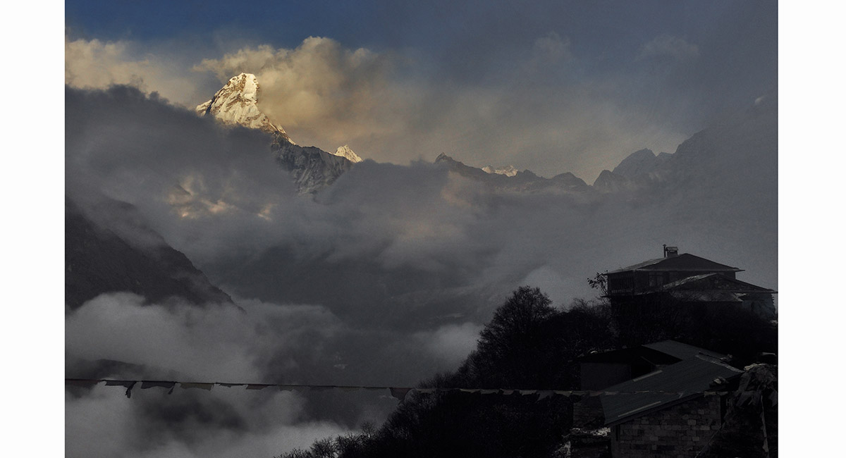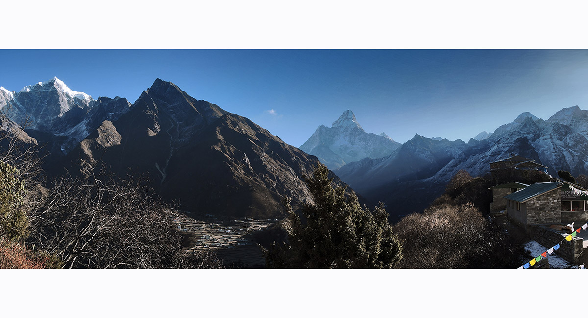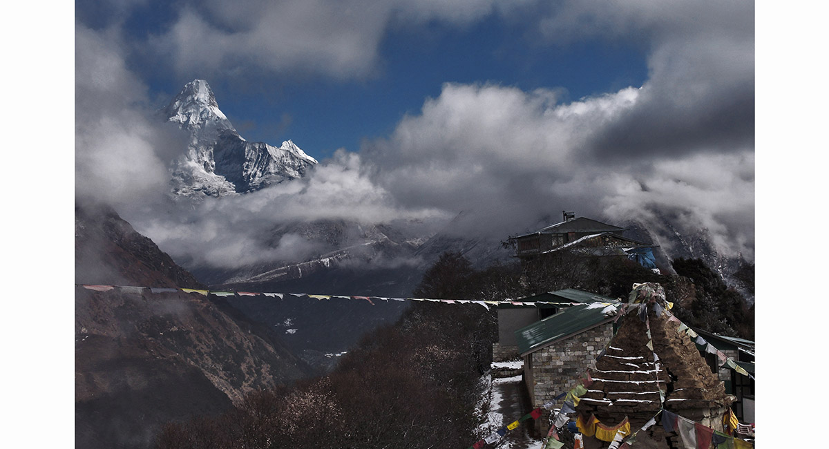 View from Pangboche to Kangtega, Tamserku and Kusum Kanguru