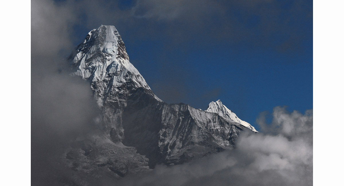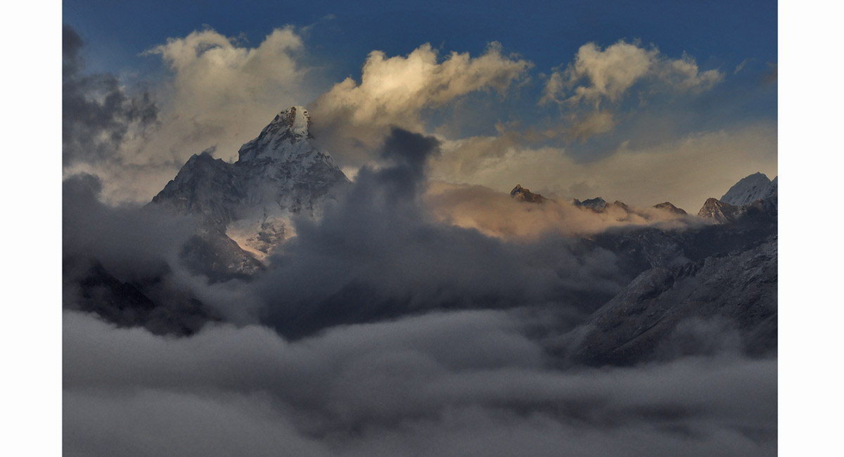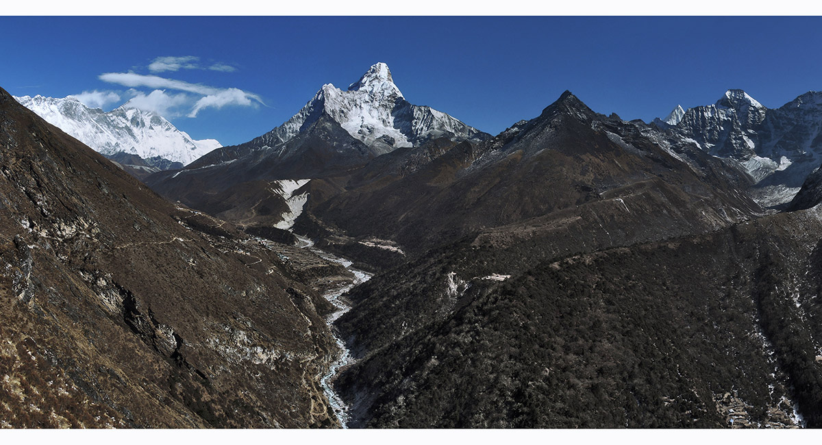 From left, Ama Dablam (6,856m), Malanphulan (6,573m), Kantega (6,685m) and Tamserku (6,770m) from Mong La (3,950m)