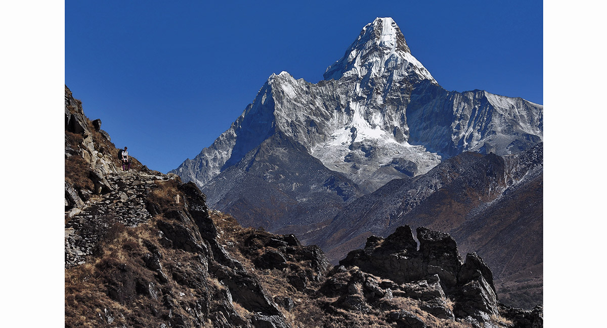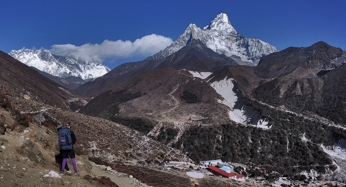 The Everest group and Ama Dablam, from the trail above Phortse, en route to Pangboche