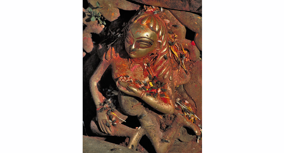 In Bhaktapur, ancient artifacts blend with flies, who enjoy converting religious offerings into daily banquets