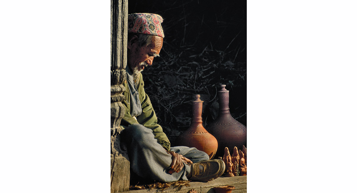 An old Newari in contemplation, Durbar Square, Bhaktapur