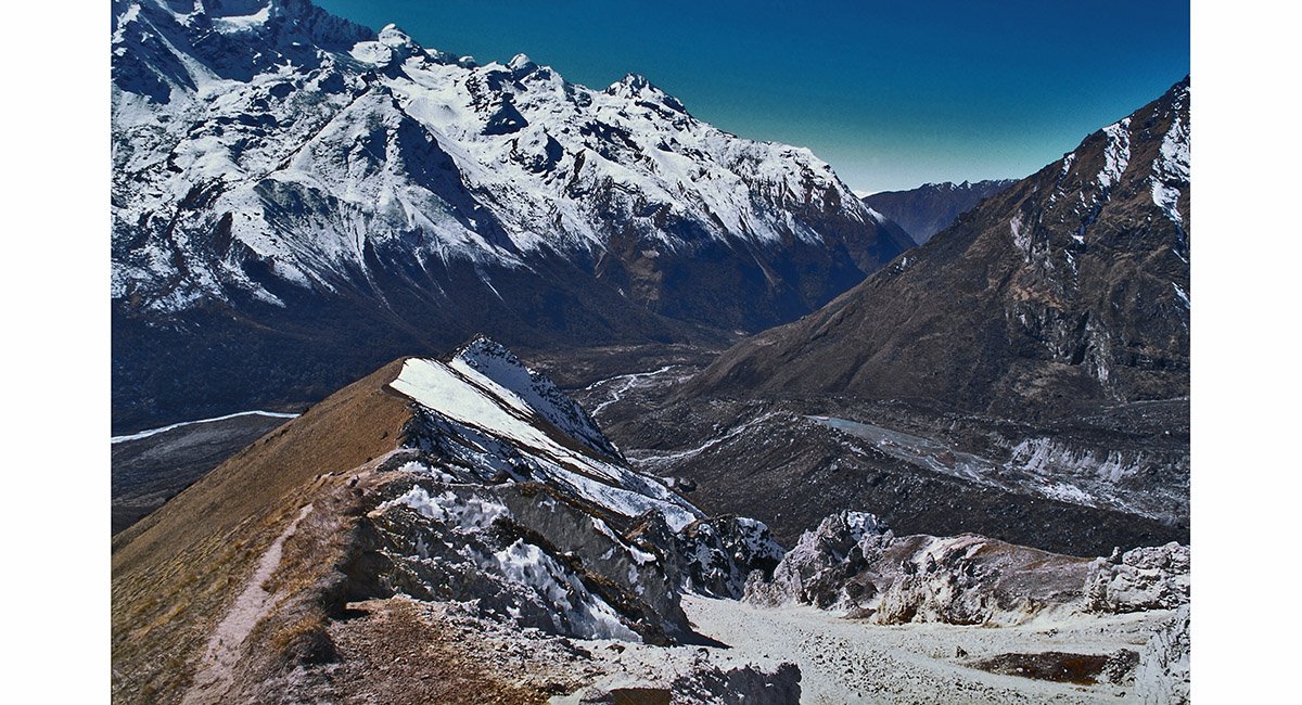 Descending along the knife-edge ridge leading from the summit back to Kyanjin Gompa, we enjoyed the views on both sides