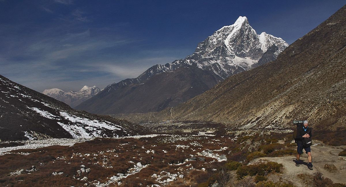 On the trail between Dingboche (4,410m) and Chhukkung (4,730m). Tawoche (6,367m) towers overhead