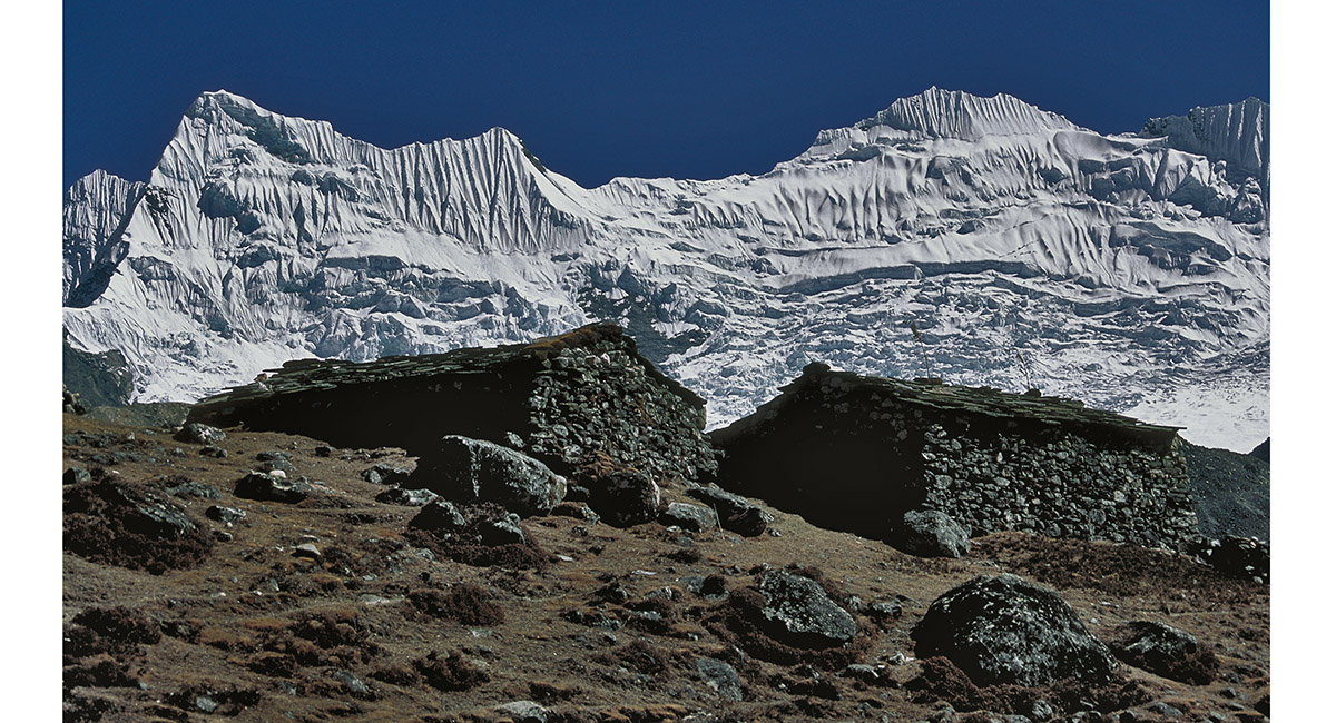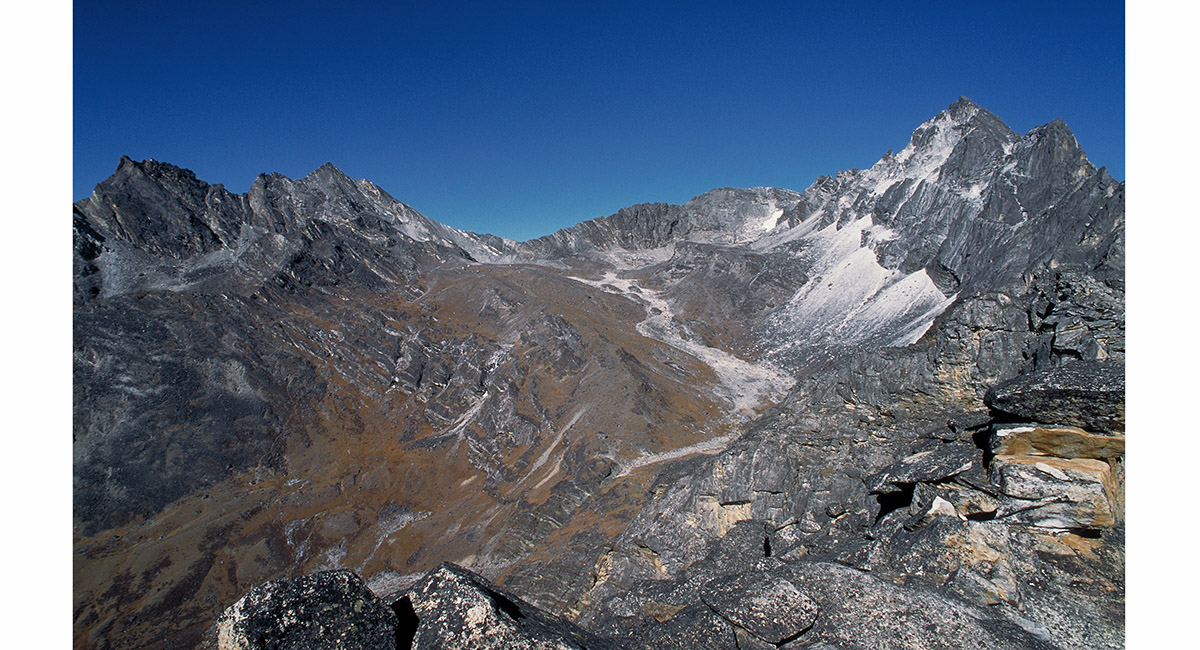 This view from Ding Gogla is to Kongma La (5,535m). Left is Pokhalde (5,806m) and right is Kongma Tse (5,820m)