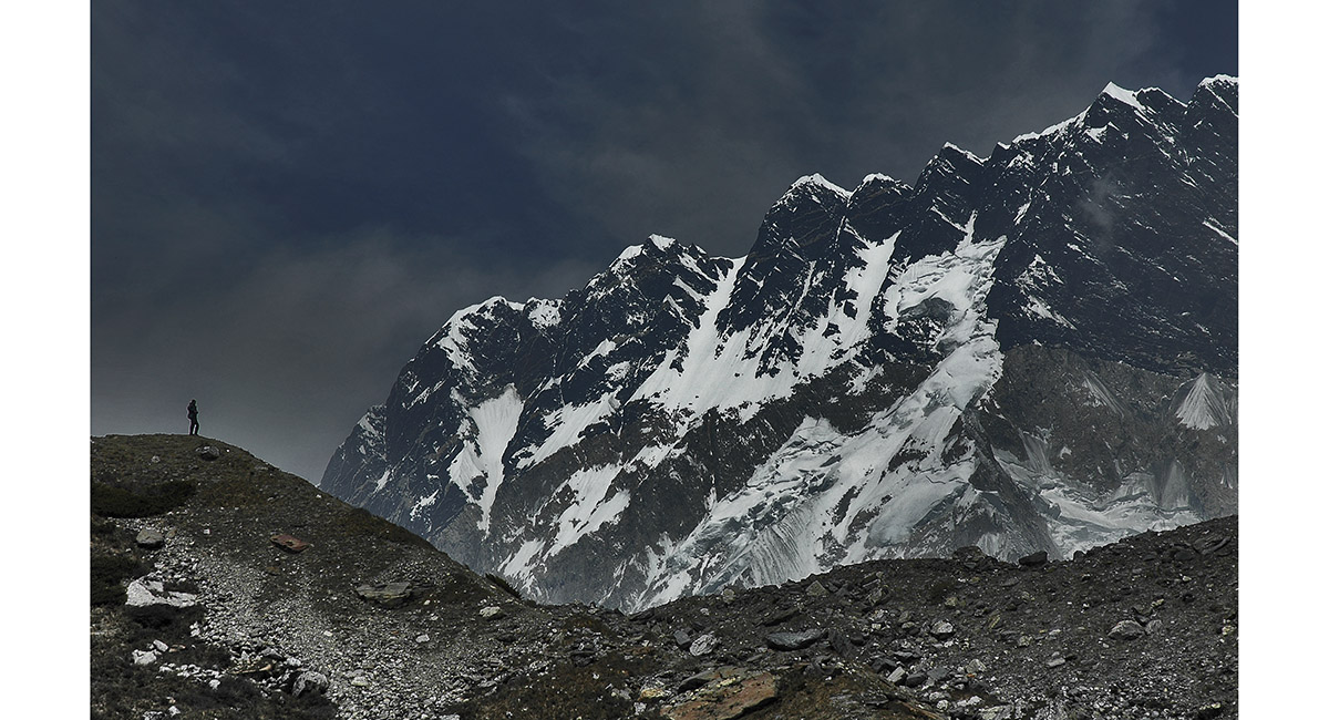 A section of the Nuptse wall, stretching 3 vertical kms above the valley floor