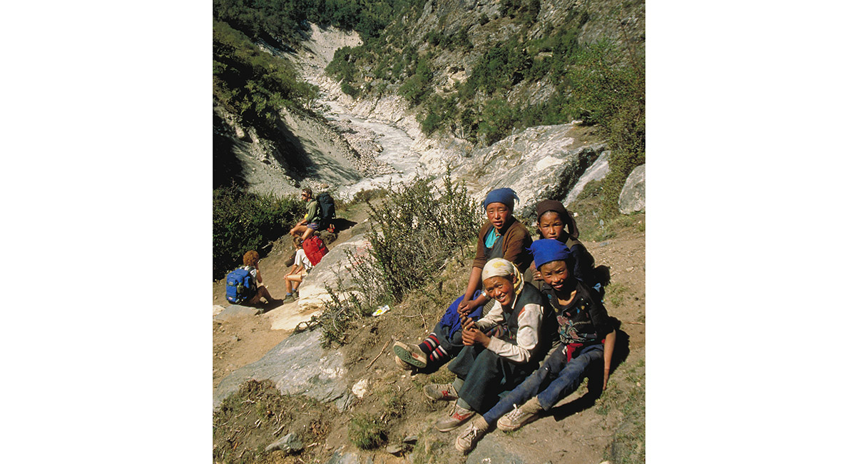 Resting on the trail between Pangboche and Tengboche