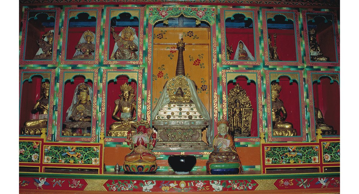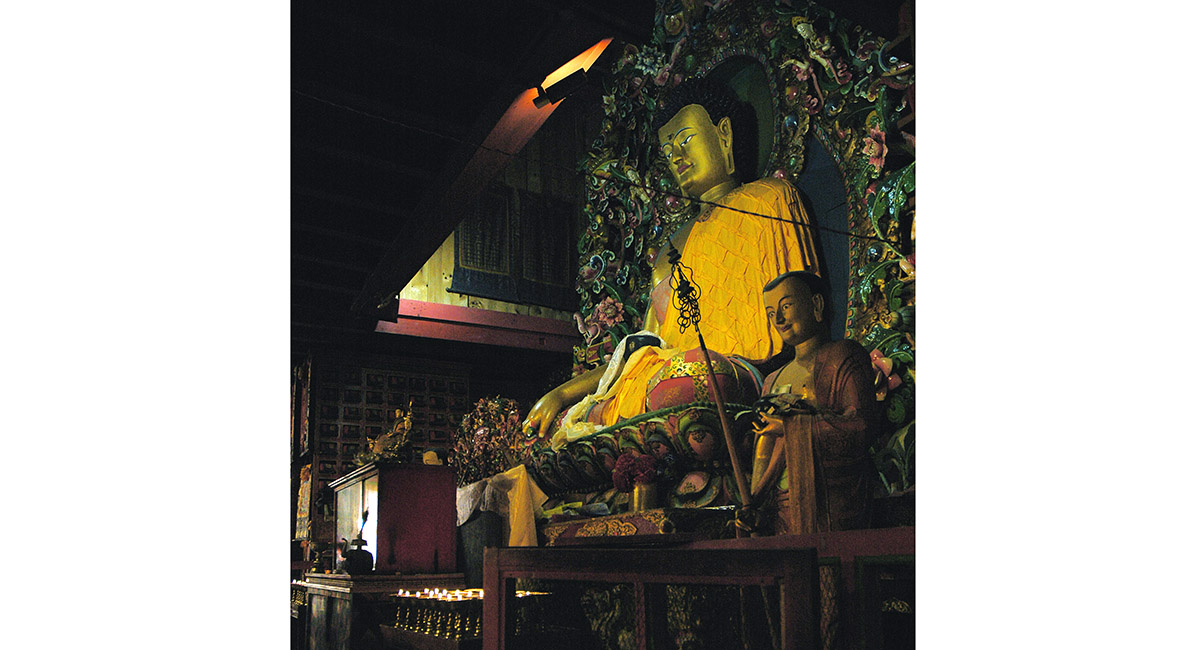 Inside the main chamber of Tengboche Gompa
