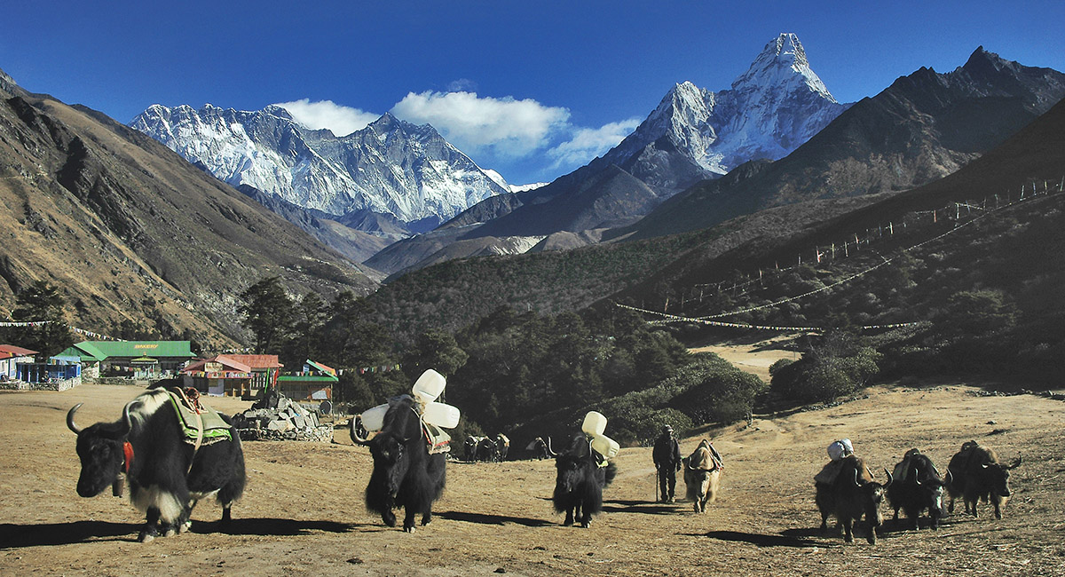 A yak caravan returns from up valley