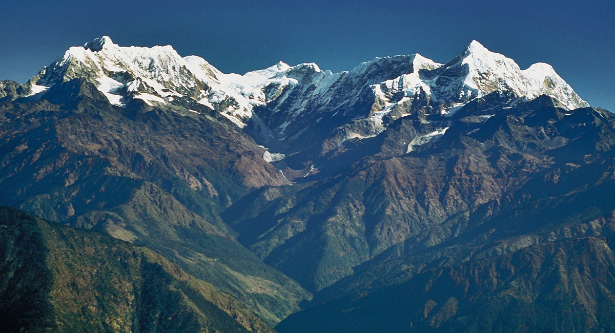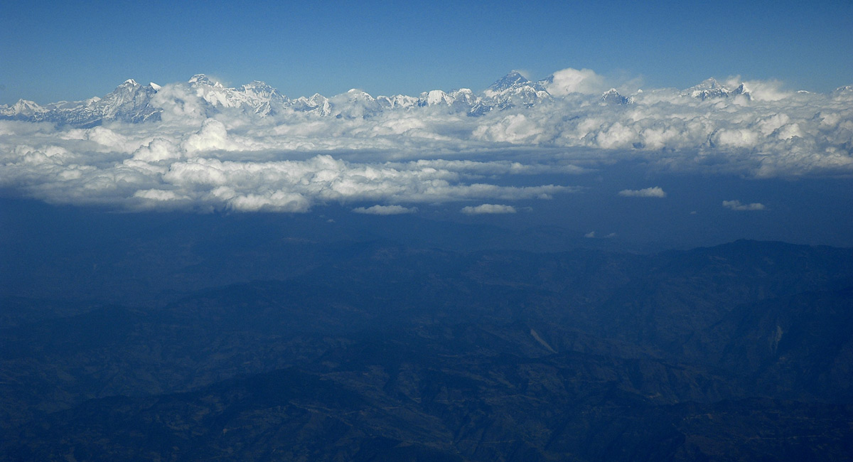 From left, ChoOyu (8,201m), Everest (8,850m), Lhotse (8,501m) and Makalu (8,475m), viewed from 10,000m on the approach to Kathmandu