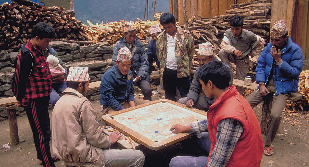 Gurung men playing a local game resembling in some respects a miniature version of pool, Lukla
