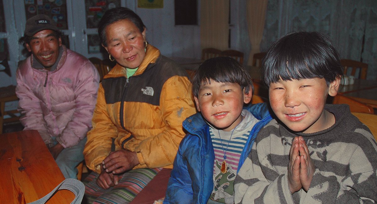 Pasang Dorje, his wife Ang Nimi and their two youngest children in April 2006, Jorsale