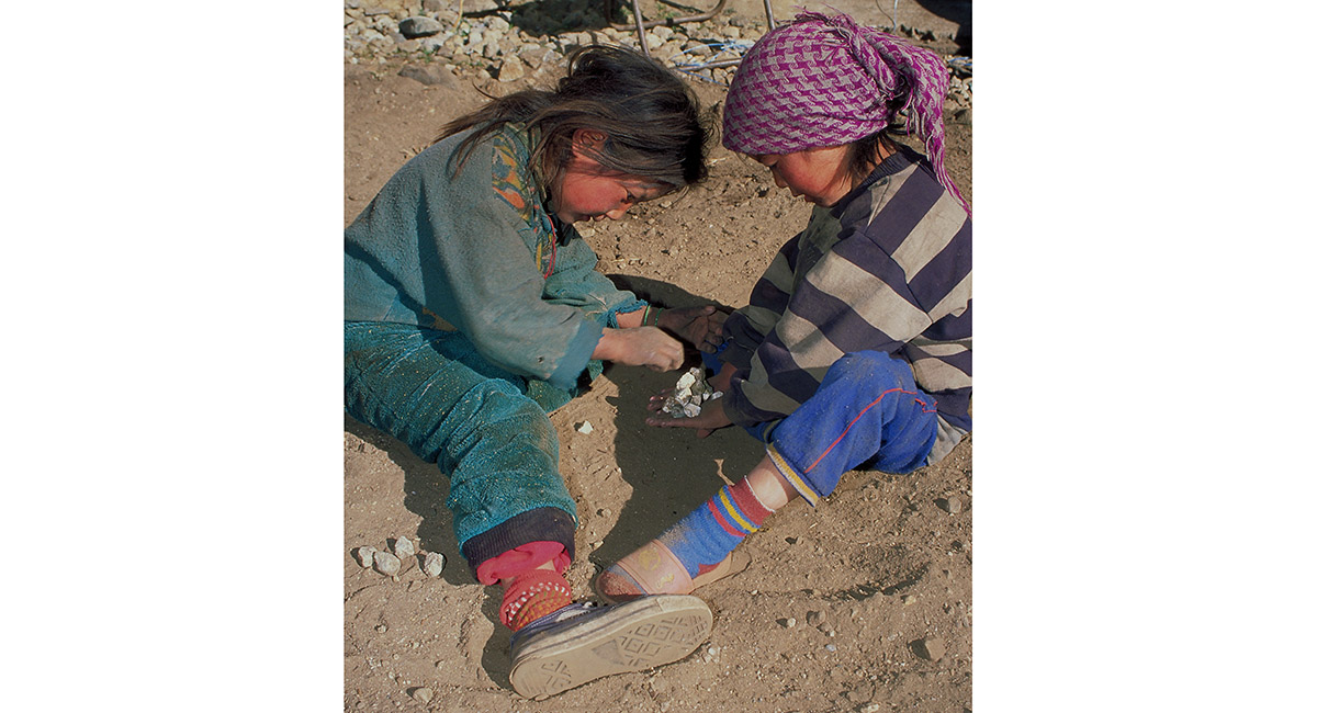 Sherpa children playing knuckle stones, Upper Pangboche (3,985m)