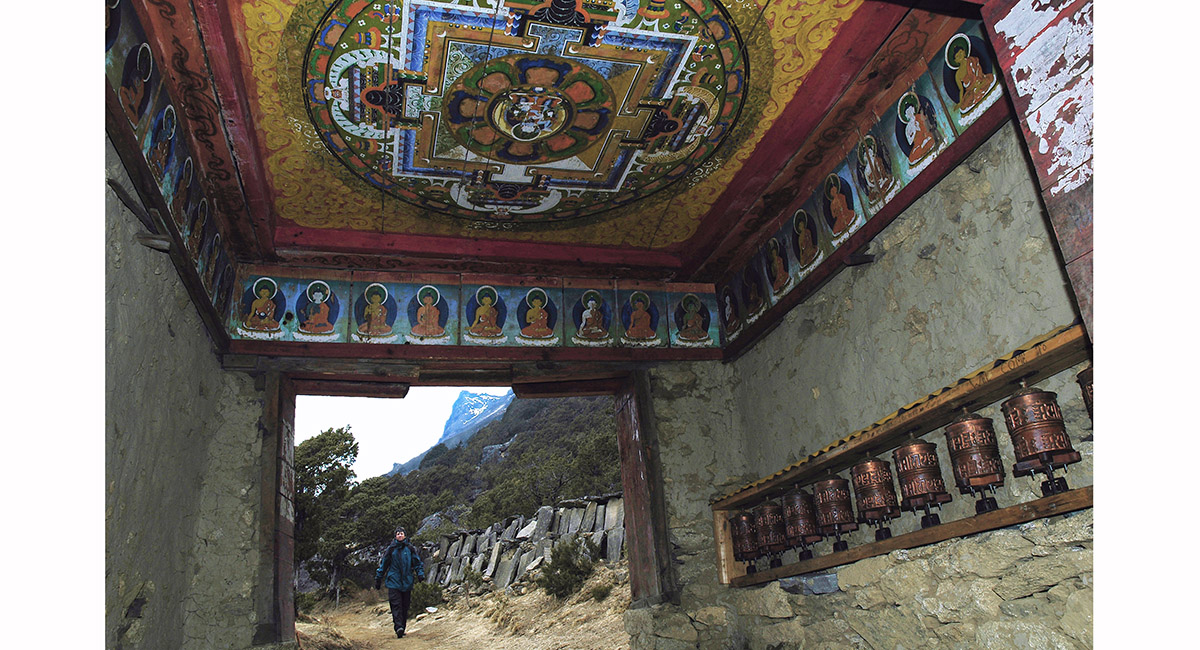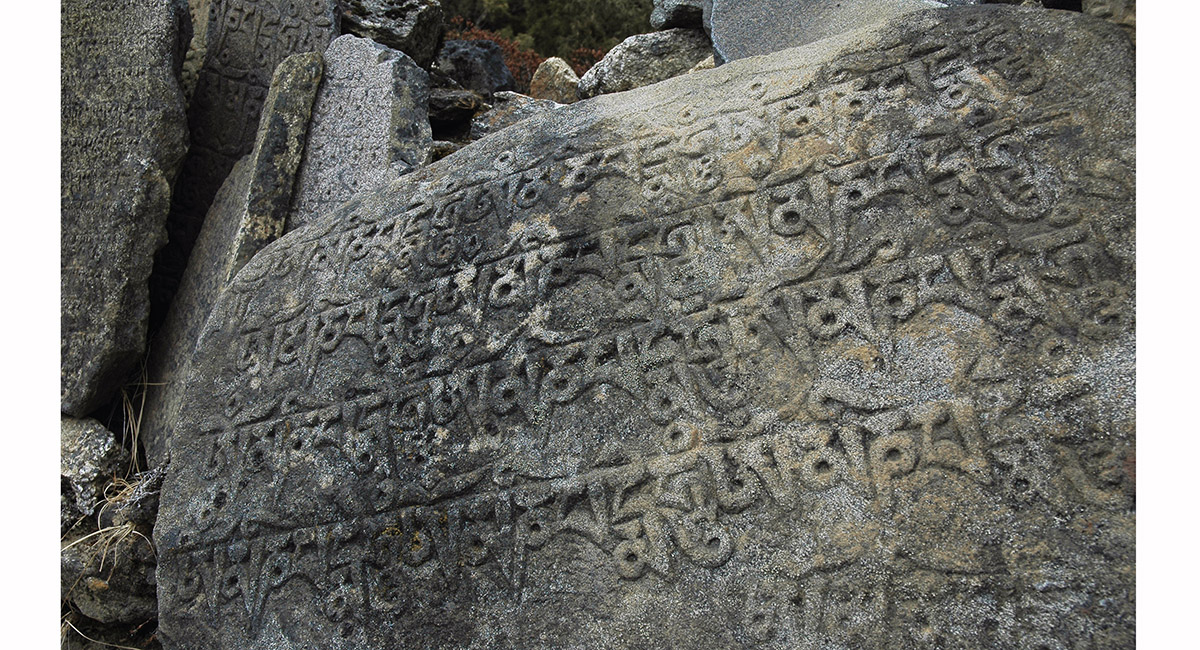 Mane stones and chorten on the approach path to Thame Gompa (4,000m)