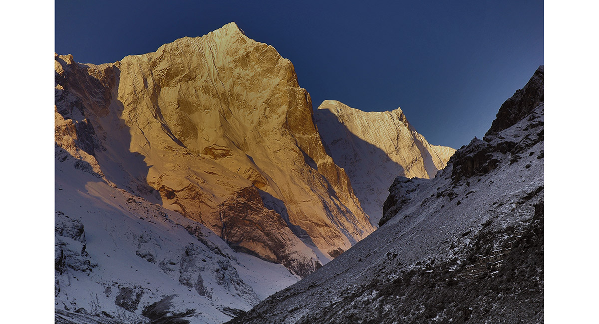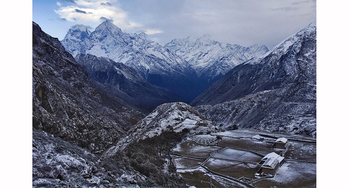 The lower end of Thame (3,800m), after a dusting of evening snow
