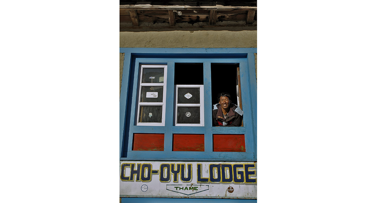 A view of Kangtega (6,779m) and Tamserku from the kitchen window, Thame Lodge (3,800m)