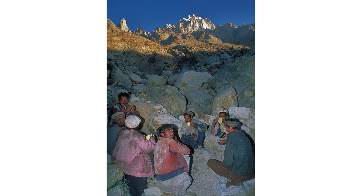 Taking a mid-morning breather, beyond Baltoro glacier’s terminal moraine