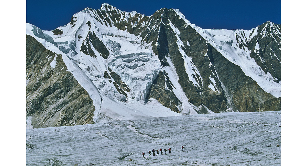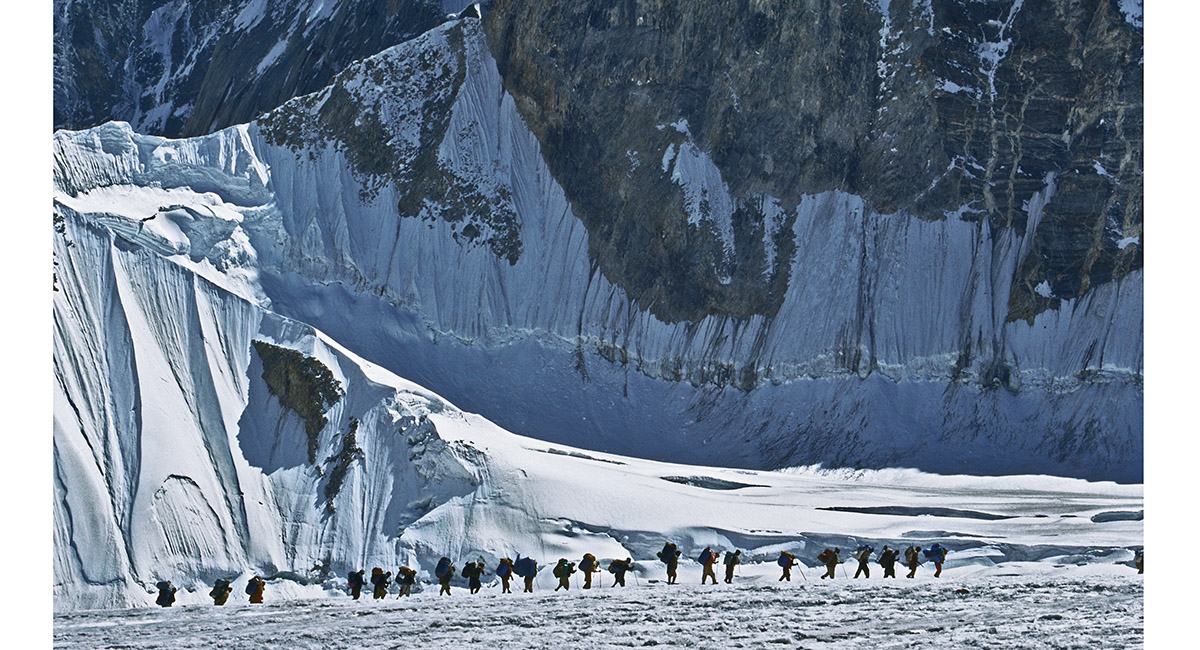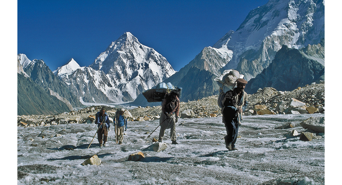 Two-legged ants make their way up towards the foot of Gondogoro La