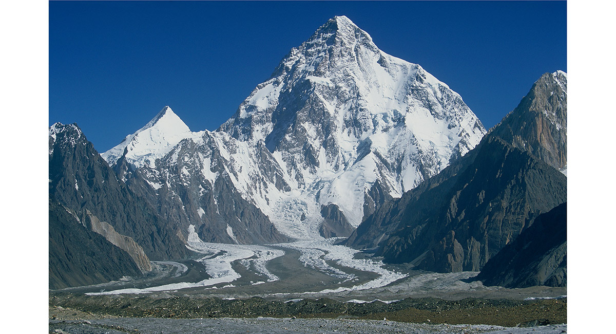 K2 in her full splendor, viewed from about one third of the way up the Vigne glacier. The Balti name for K2 is Chogori, meaning “great mountain”