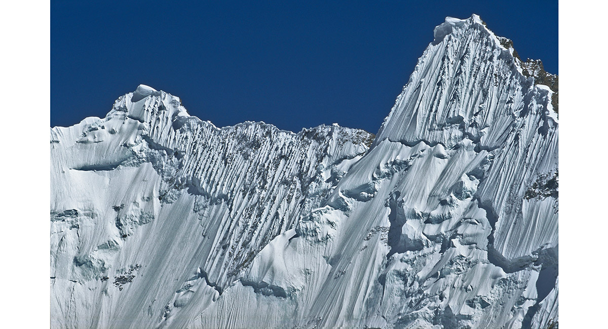 Fluted ice walls on Vigne, viewed from Ali Camp at about 5,000m