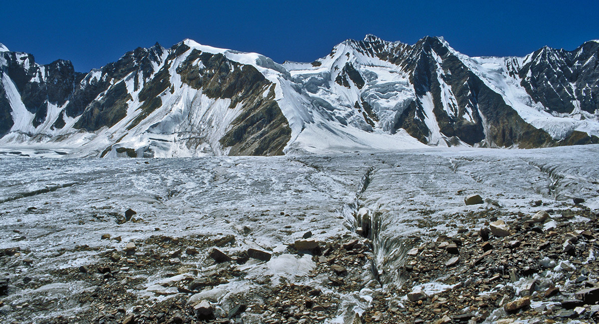 Looking up the Vigne glacier towards Gondogoro La, with the Western flanks of Vigne peak at left
