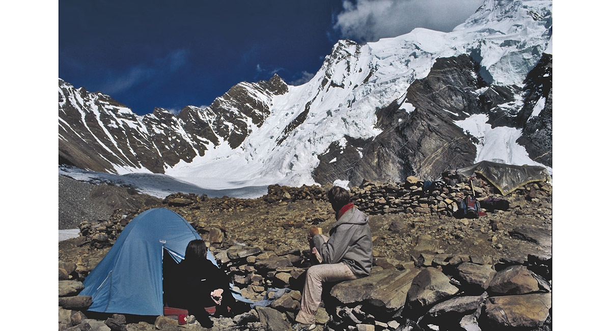 Due to the treacherous footing encountered on our descent, it was prudent to rope up with our sure-footed Rozi Ali. However, with each downward step the going got easier as our lungs sucked in thicker air again (First visit 1992)