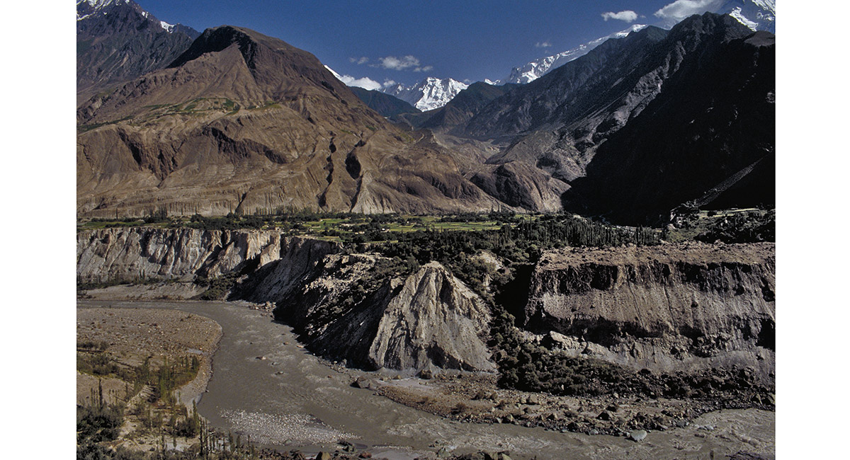 Minapin and the Karakoram Highway, as seen from across the river at Hindi