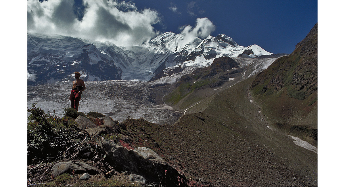 Time to reflect on the magnificence of my surroundings from the moraine of Minapin glacier, Rakaposhi (7,788 m) behind
