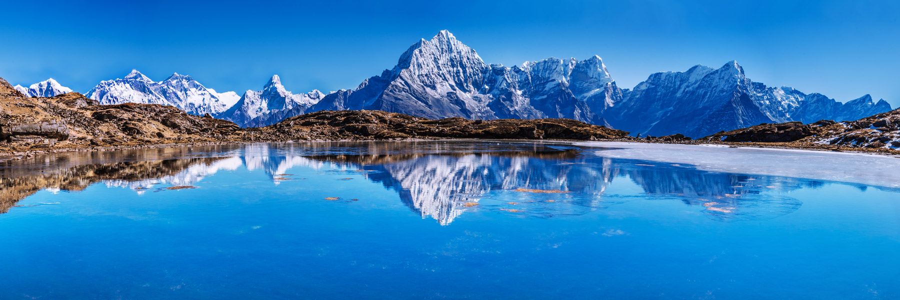 View across Kongde Lake to the Everest Group and more, Khumbu, Nepal