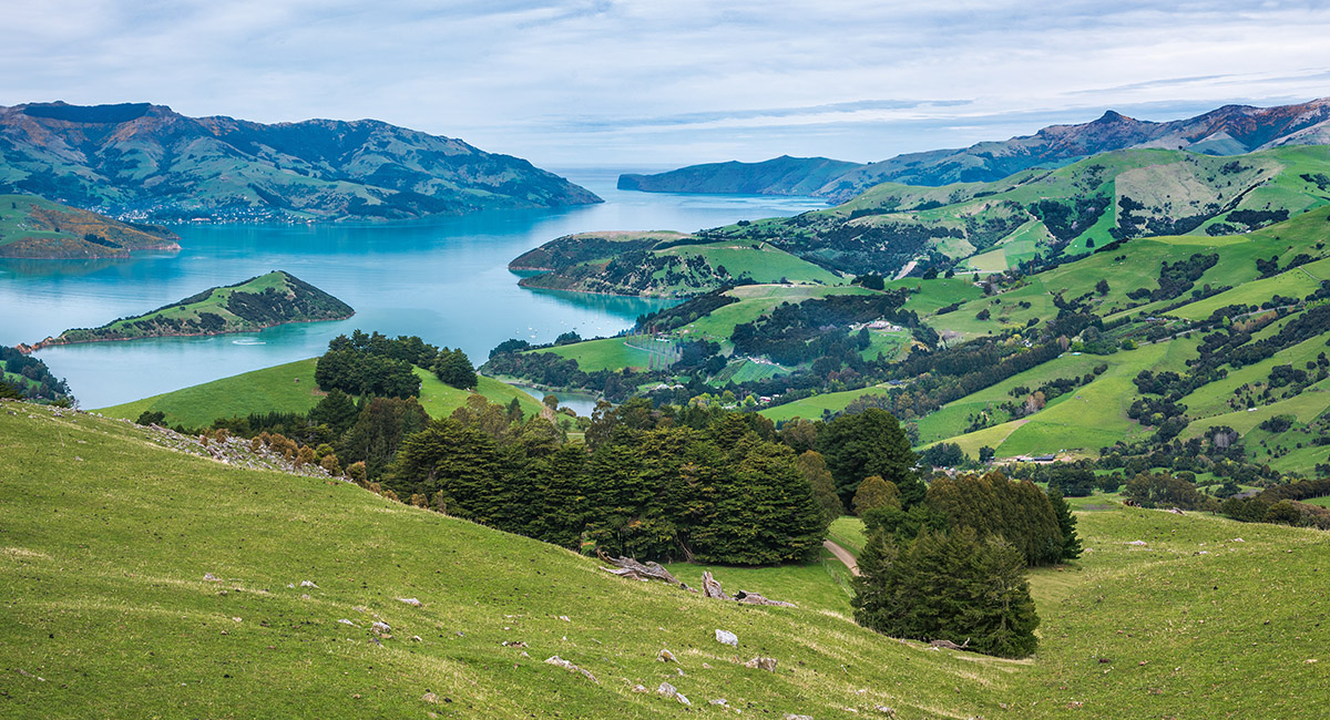 A view south across Akaroa Harbour to Timutimu Head, from about 600m on Summit Road