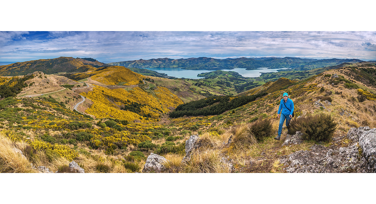 Looking northwest to Akaroa Harbour, from Stony Bay Peak (806m)
