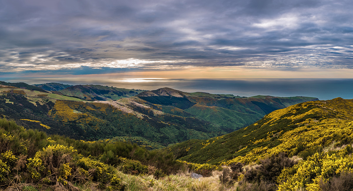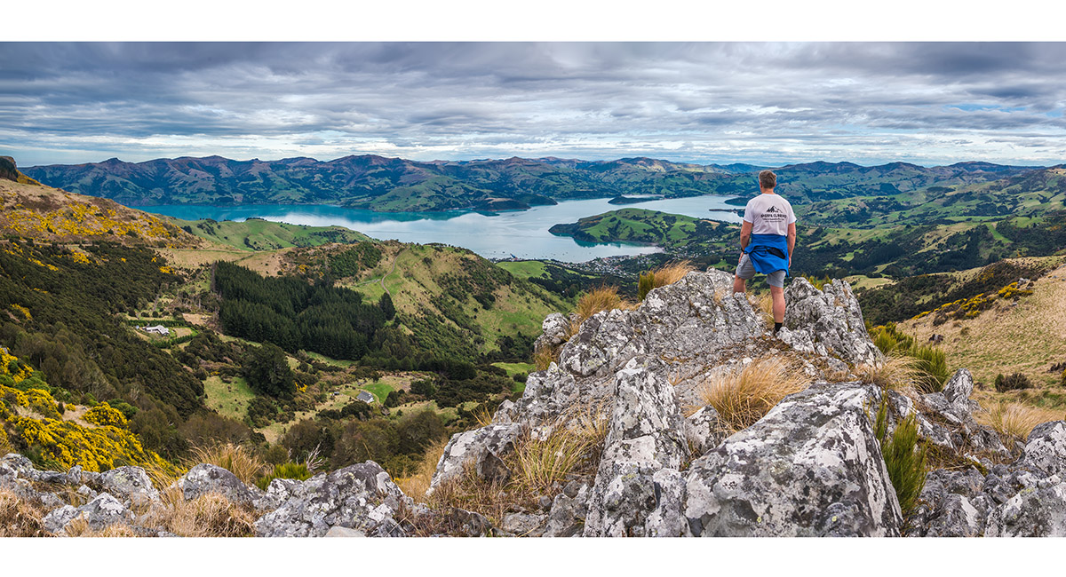 Looking northwest to Akaroa Harbour, from between Stony Bay Peak and Flag Peak