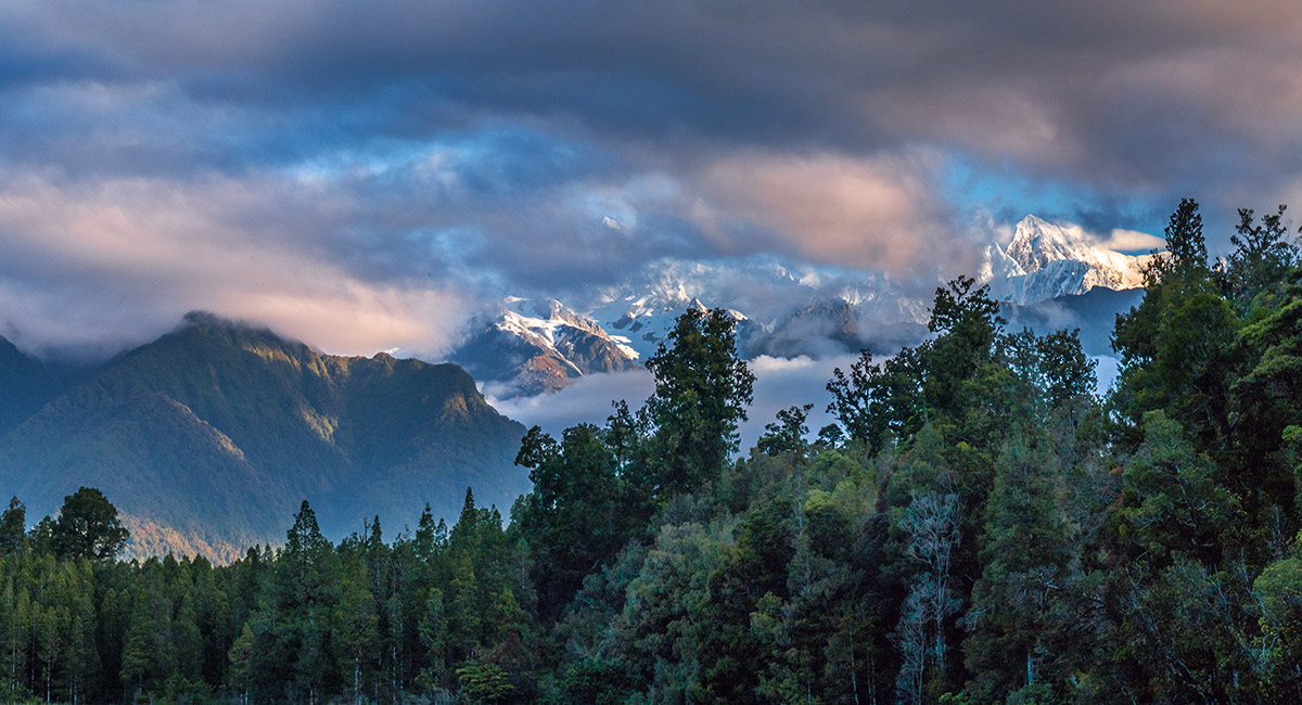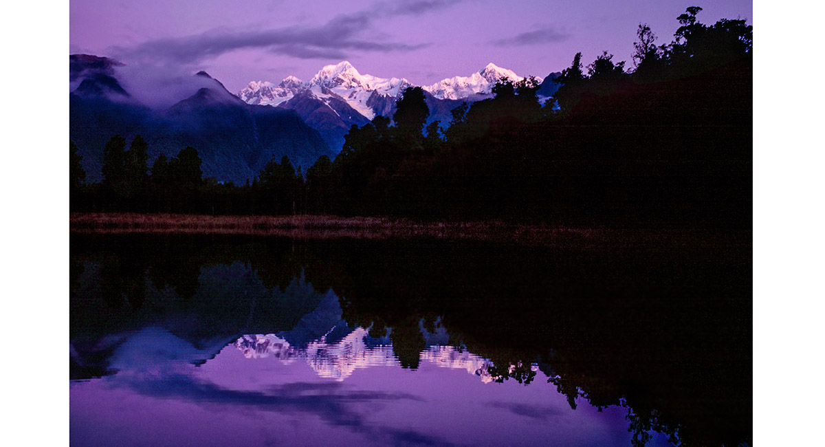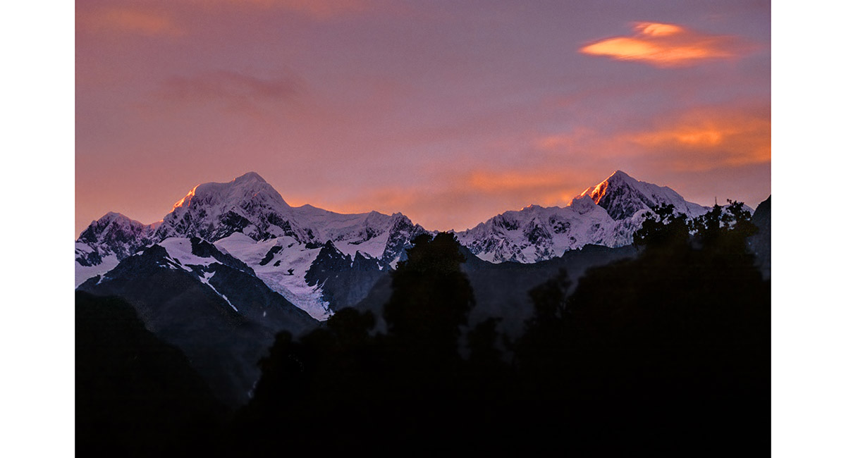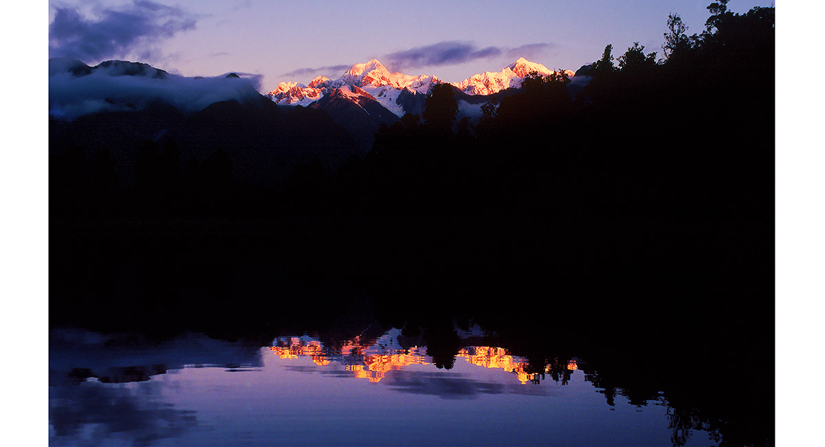 Mount Tasman and Aoraki Mount Cook (far right), at dawn
