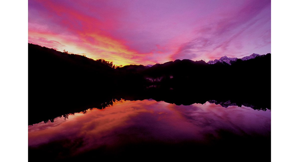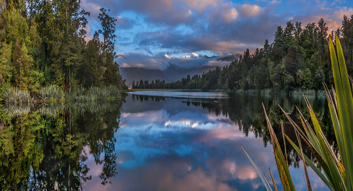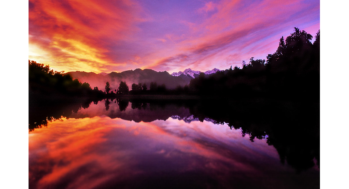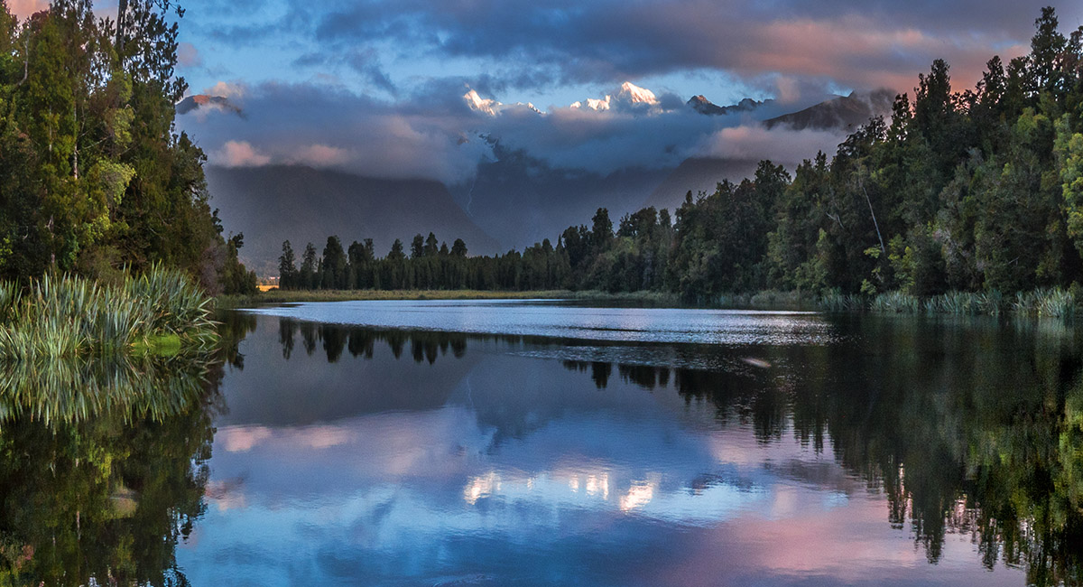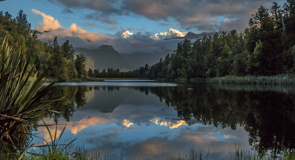 Mount Tasman and Aoraki Mount Cook (far right), at dawn