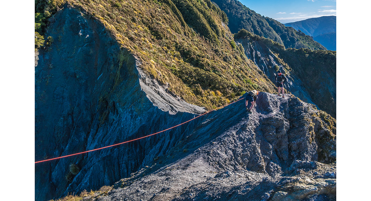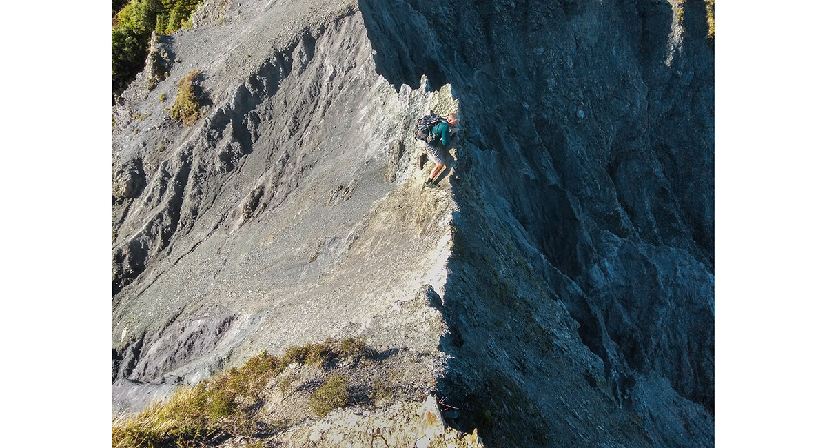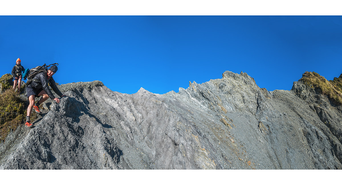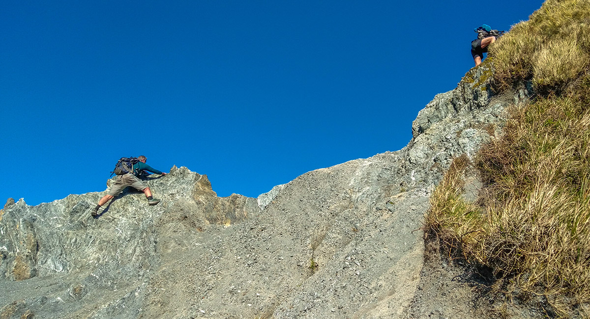 Looking southwest, over the steepest part of the Cheval, to the ridge leading up to Mt Matthews