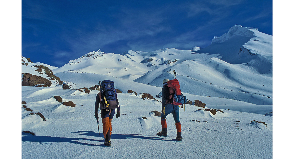 A blizzard at Tukino Village (1,700m), with Te HeuHeu (2,732m) behind