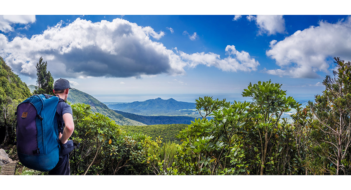A view back to Pouakai Hut and the Hump from the summit of Pouakai (1,400m)