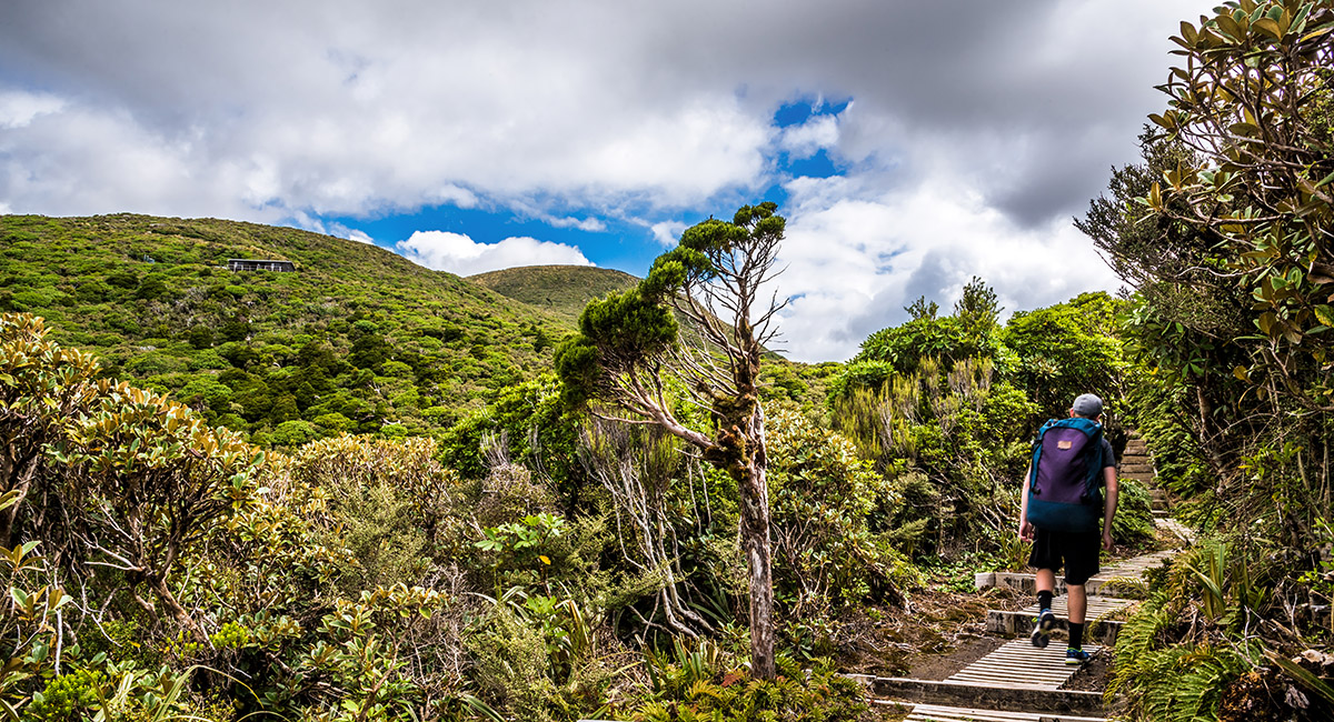 On the Pouakai Track, passing the Hump (1,292m - left), en route to Pouakai (1,400m - left of centre skyline)