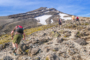 At about 1,900m, with Tahurangi Lodge 400 metres below on the right. Tongariro, Ngauruhoe and Ruapehu are still visible on the right skyline