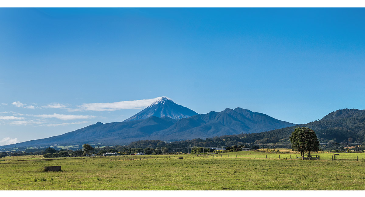Mount Taranaki and Pouakais, viewed from the coast road north of Oakura