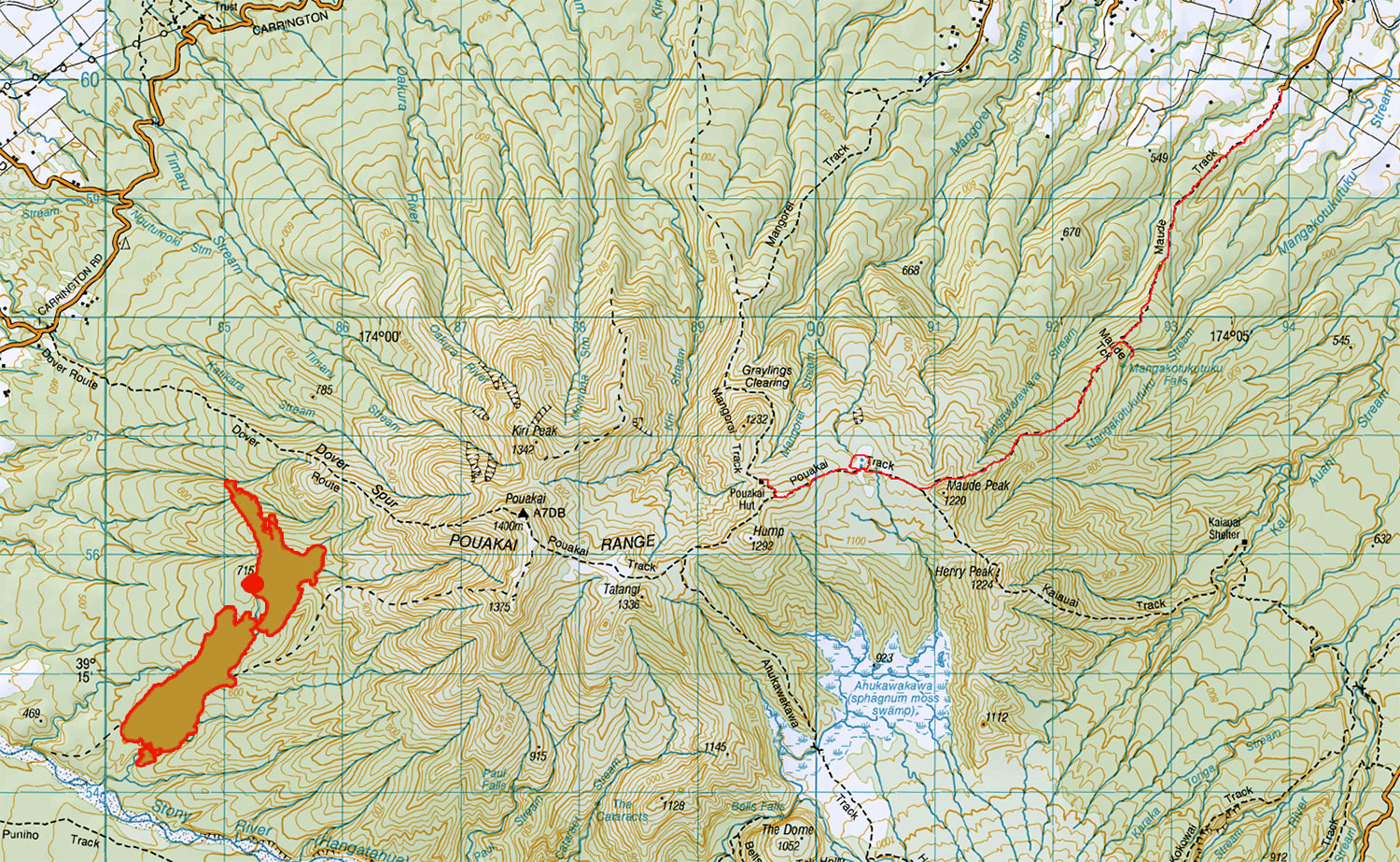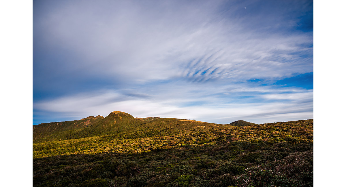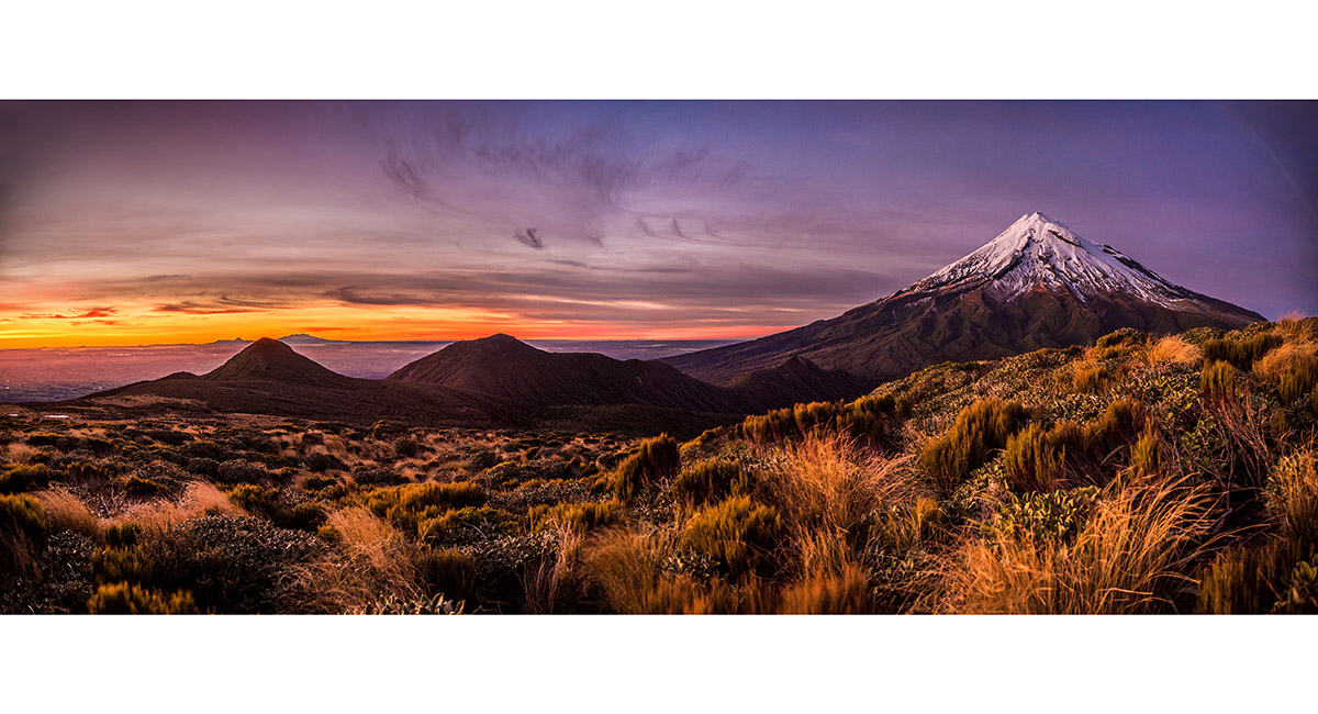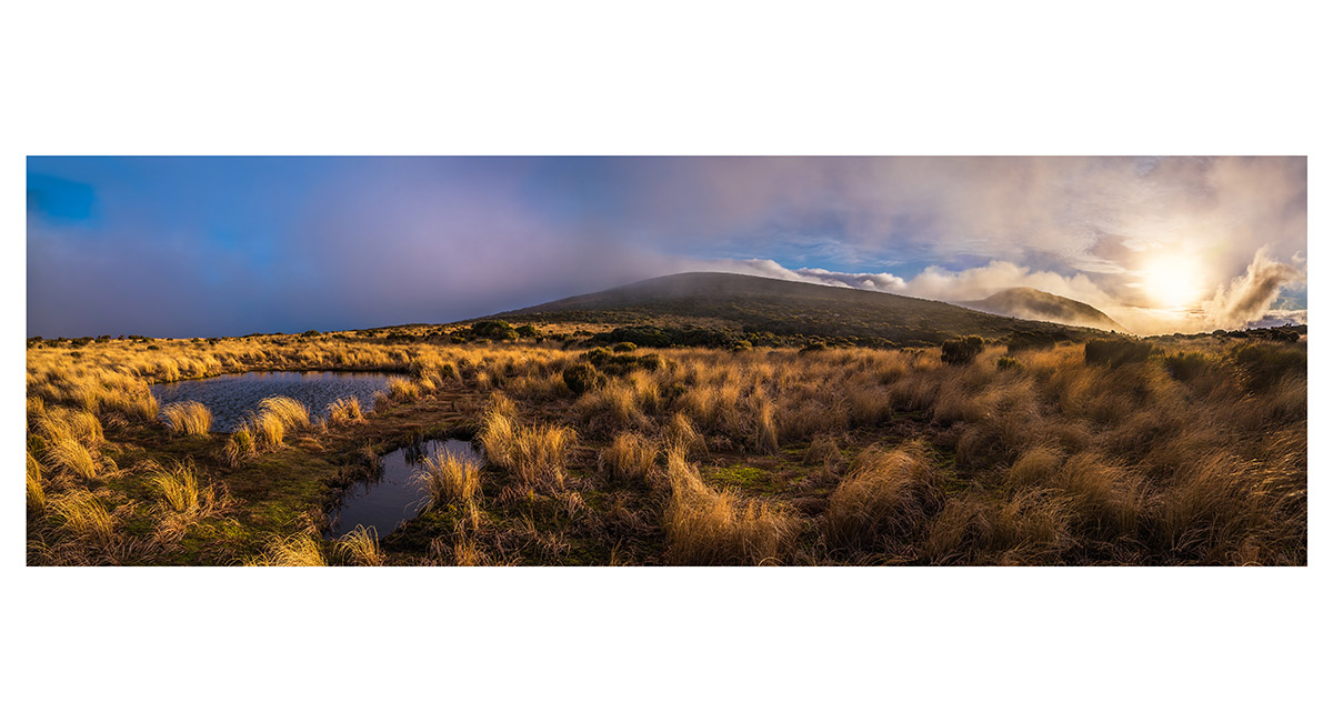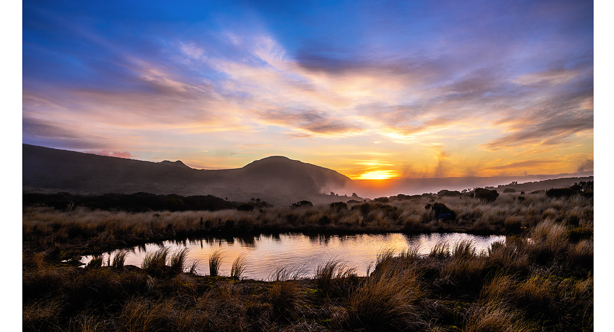 A sunset view west, from the tarns on the Pouakai Track at 1,150m