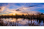 A dawn view west, across an iced up smaller Pouakai Track tarn
