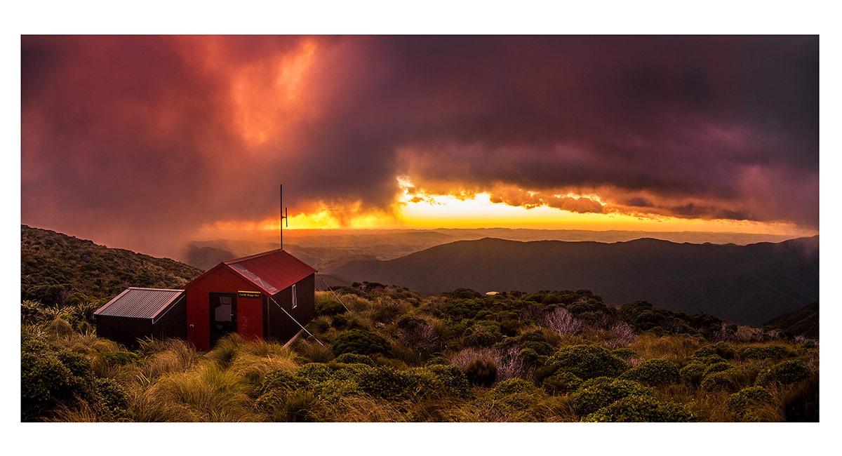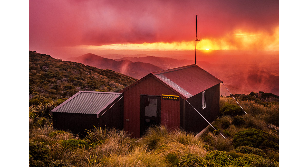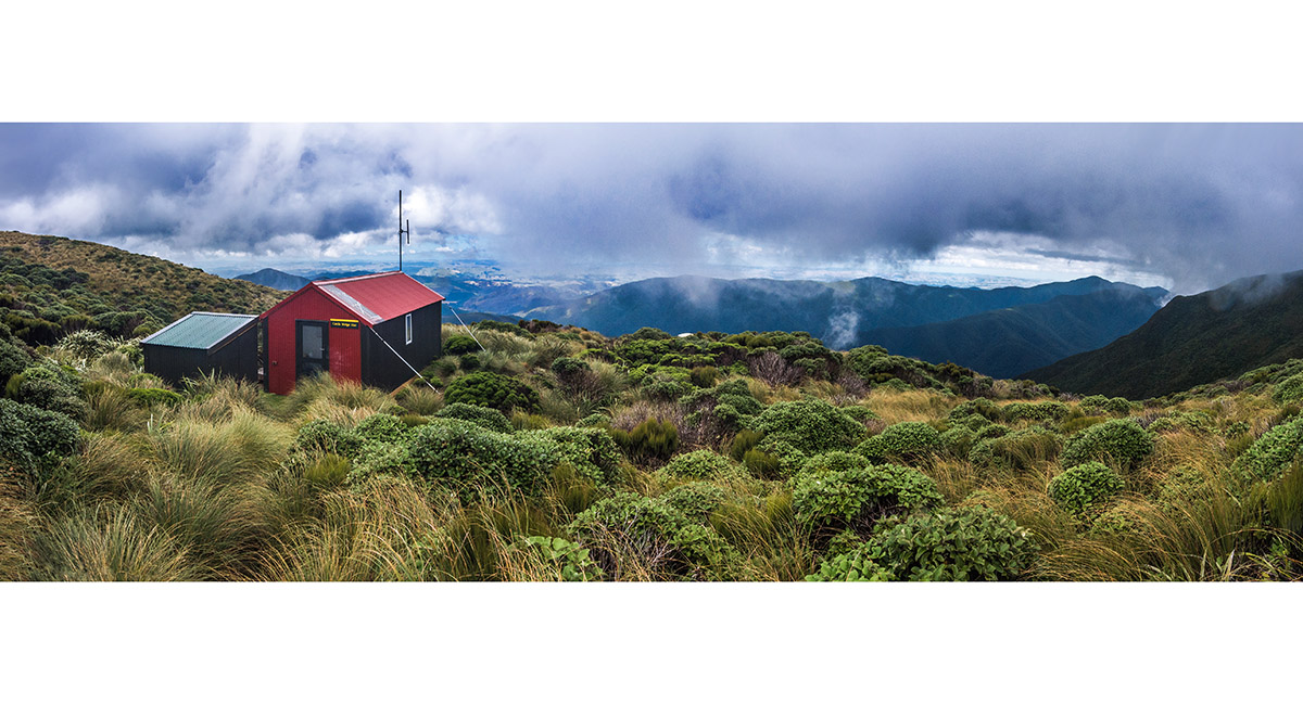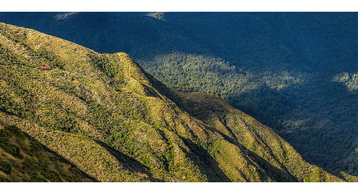 Cattle Ridge Hut, viewed from Cattle Ridge at about 1,200m