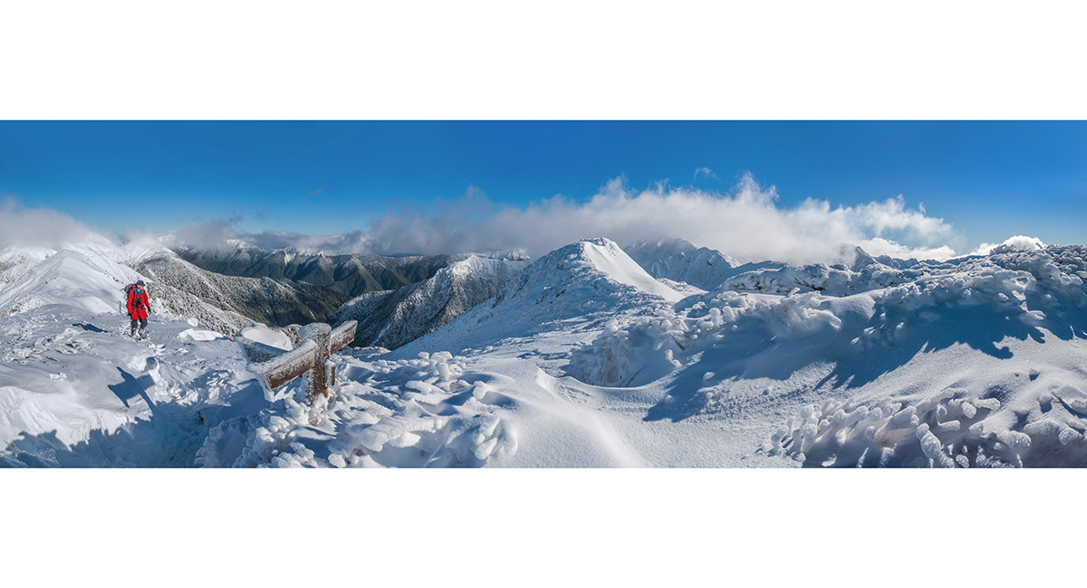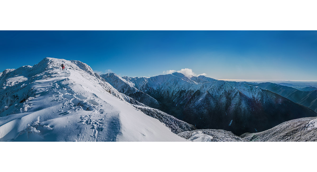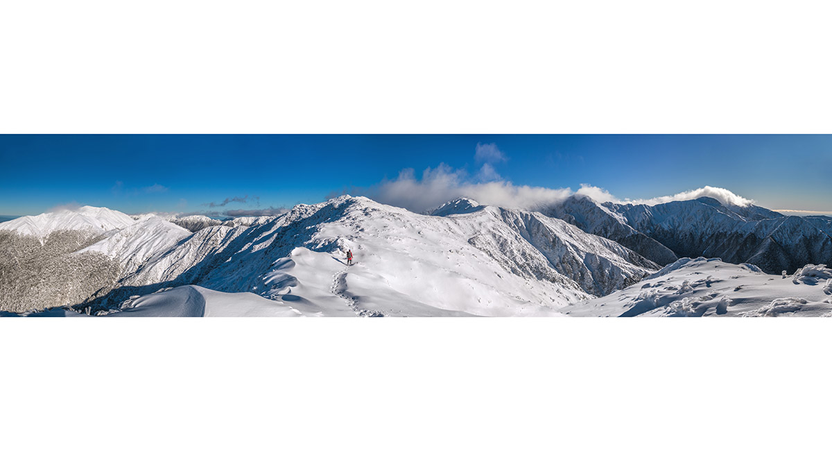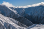 The Three Kings, Mitre and Baldy ridge, from the poled route above Jumbo Hut